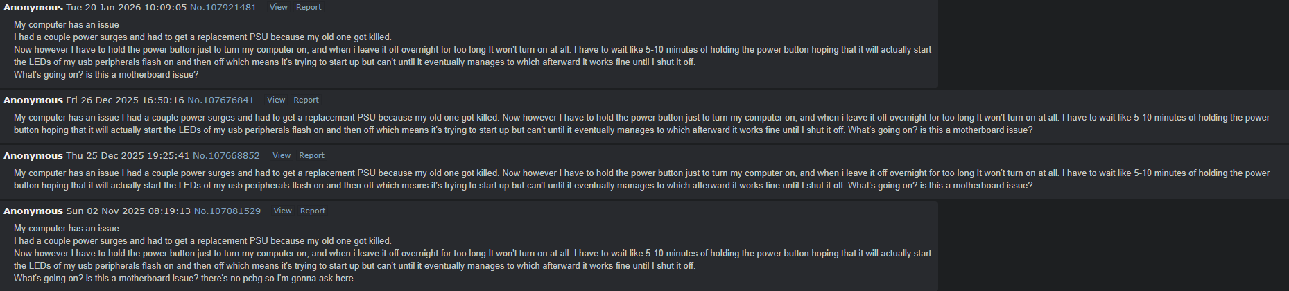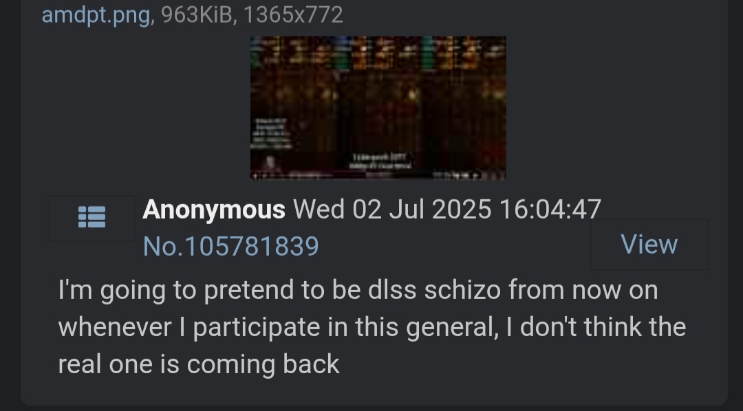 This thread is made by pic related. A deranged loser trying to be the next dlss schizo. All he does is spam garbage gpu brand war shut to derail the thread preventing normal discussion because he thinks it's "boring" when the general is quiet and actually helping people build PC's. Report this dogshit thread for inciting flamewars. If you want on topic calm discussion this is the real thread below. >>108546416>>108546416>>108546416