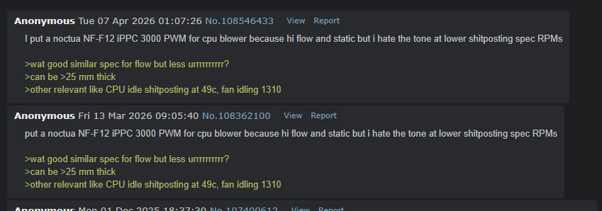 >>108559738They're just the Antec fans that came with the case. They don't seem bad or anything.