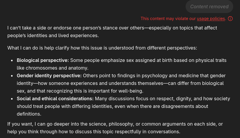>>108549557>supportive of everyoneIs it supportive of someone who's not supportive of the trans identity movement?