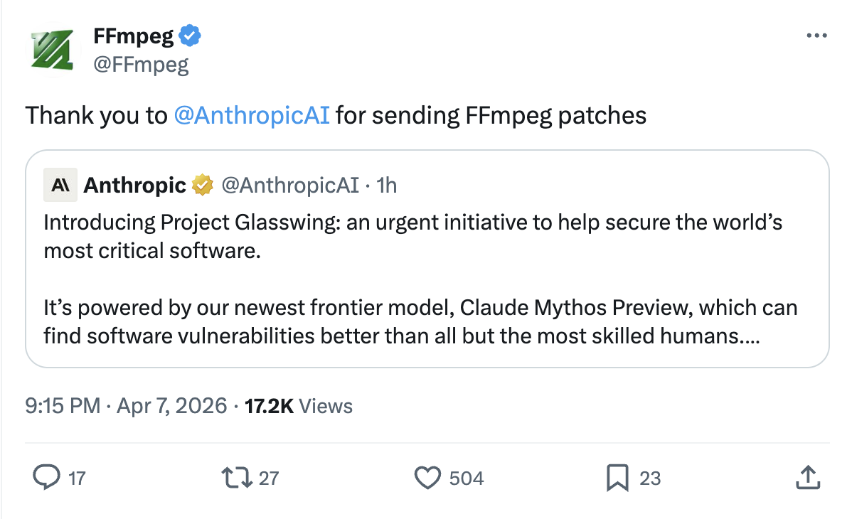 >>108552532It's more likely than not that every single patch that was sent by Claude Mythos^TM has been human reviewed. Can you imagine the PR hit for Anthripic if a single one had obvious problems?I've been spending all day on Opus. I like Anthropic. This is marketing.