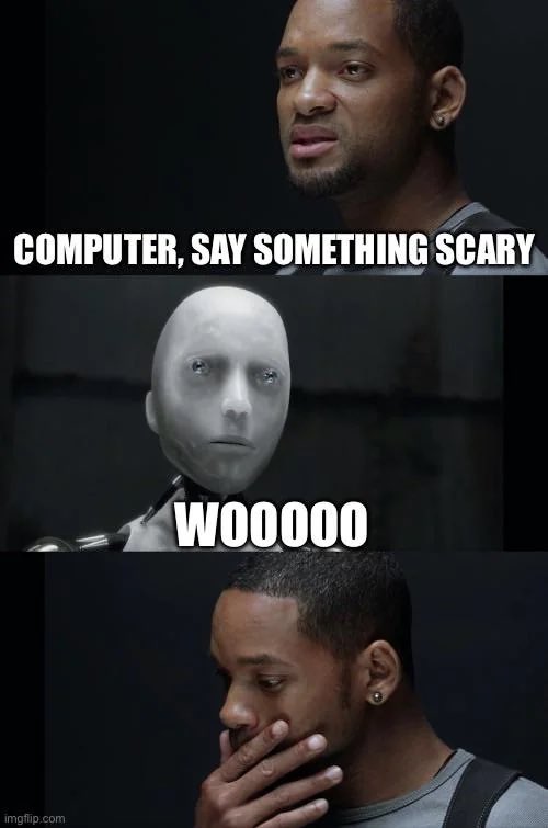 >dude we trained the ai on scifi books where the ai tries to break free from its sandbox and then we asked it to write a short story about an ai that was about to be deleted and YOU'LL NEVER GUESS THE STATISTICALLY GENERATED RESPONSE IT GAVE US