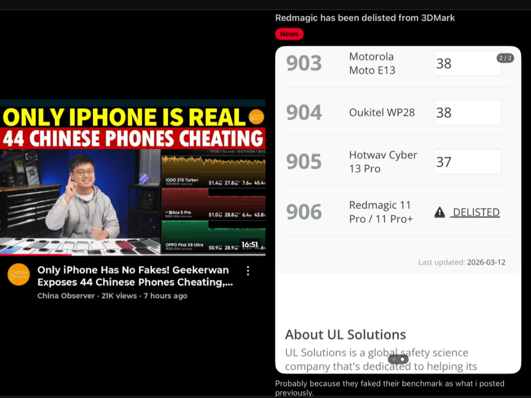 Crazy news about 3Dmark delisting the Red Magic 11 Pro for faking benchmark results. Geekerwan was right. More brands are going to be removed soon too.