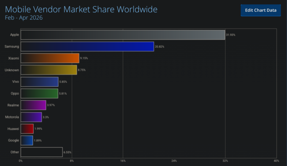 https://gs.statcounter.com/vendor-market-share/mobile/worldwide/#monthly-202602-202604-bar