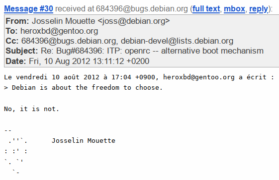 If that's how you want to operate, just fleeing like a pussy every time someone you don't like takes over then be my guest, just try and stay out of Debian for good this time.