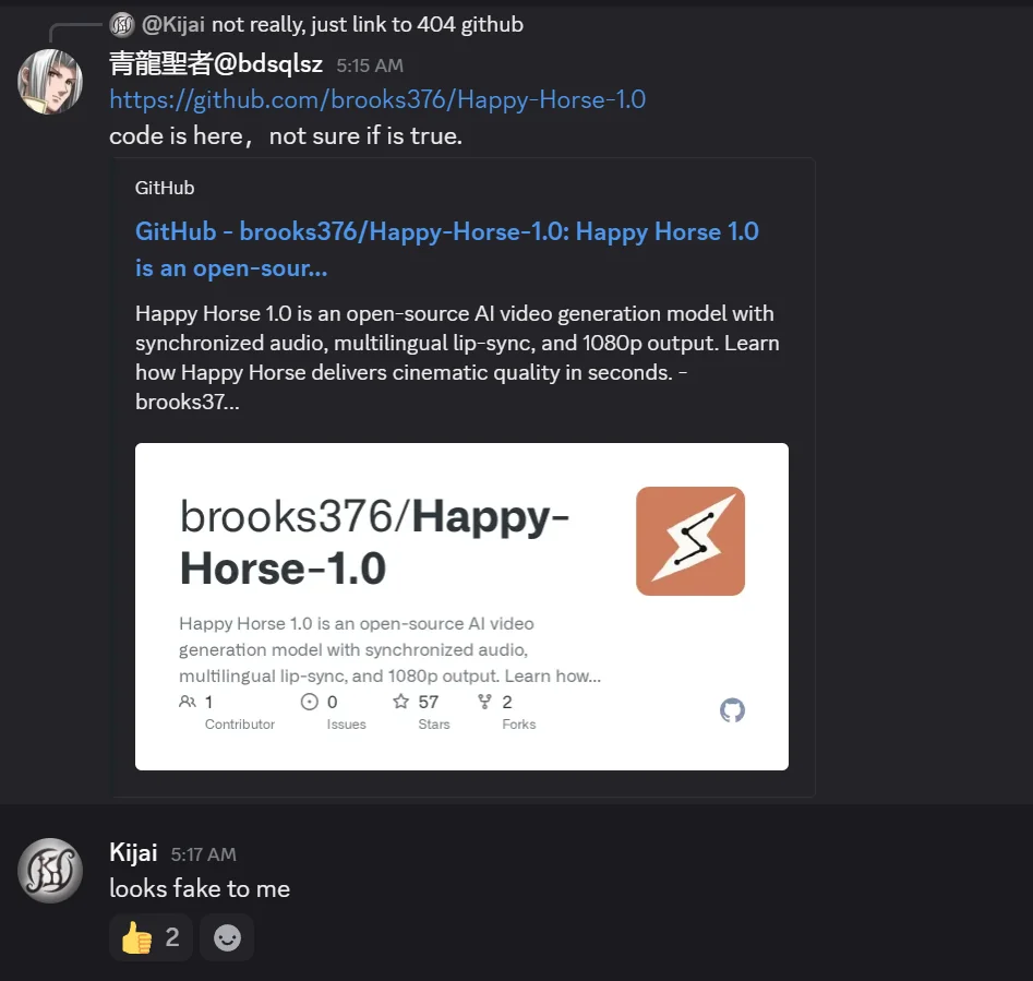 >>108563655https://github.com/brooks376/Happy-Horse-1.0/issues/3#issue-4225521889>The author is using a deceptive title and README to exploit the open-source community's trust.>The open-source community is a place for developers to share and collaborate, not a dumping ground for your vanity metrics or clickbait schemes.
