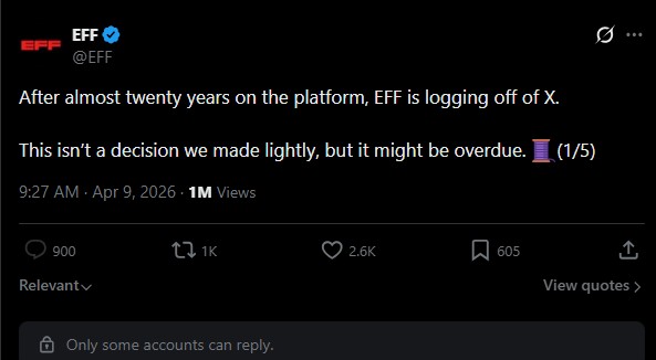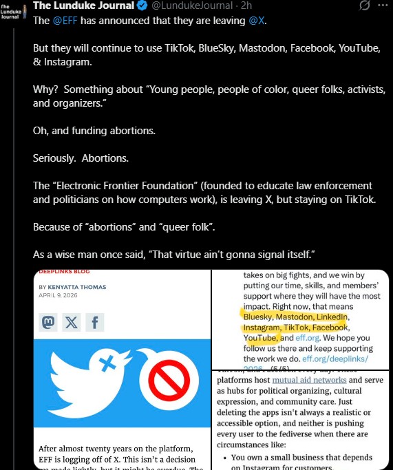 https://x.com/AutismCapital/status/2042257296022184190This was the last straw for EFF. Thats why they left.