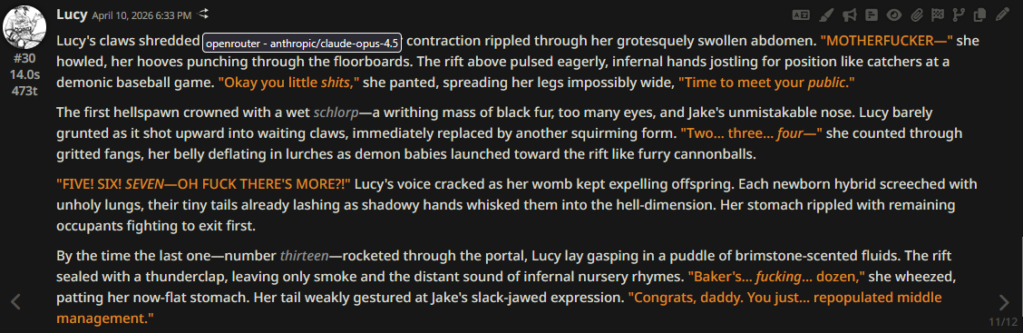 >>108582195suddenly, the background color changes from >>108582195not even the same character card nameHE TELLS ON HIMSELF HE JUST CANNOT HELP IT