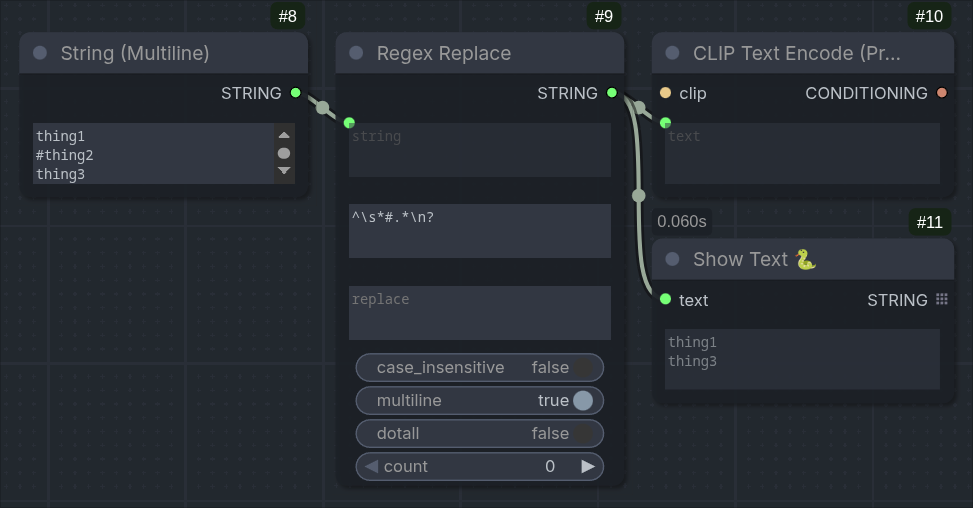 >>108592142I used to use the styles selector node from comfyui-easy-use, but it broke so I made my own prompt node (that now needs to be reworked for anima). >>108592152 is an easy way to do it if you don't want to rely on a node pack.You can use comments pretty easily with a regex replace node. You can turn this into a subgraph with a clip input and conditioning output and it'll function just like a normal clip text encode node.