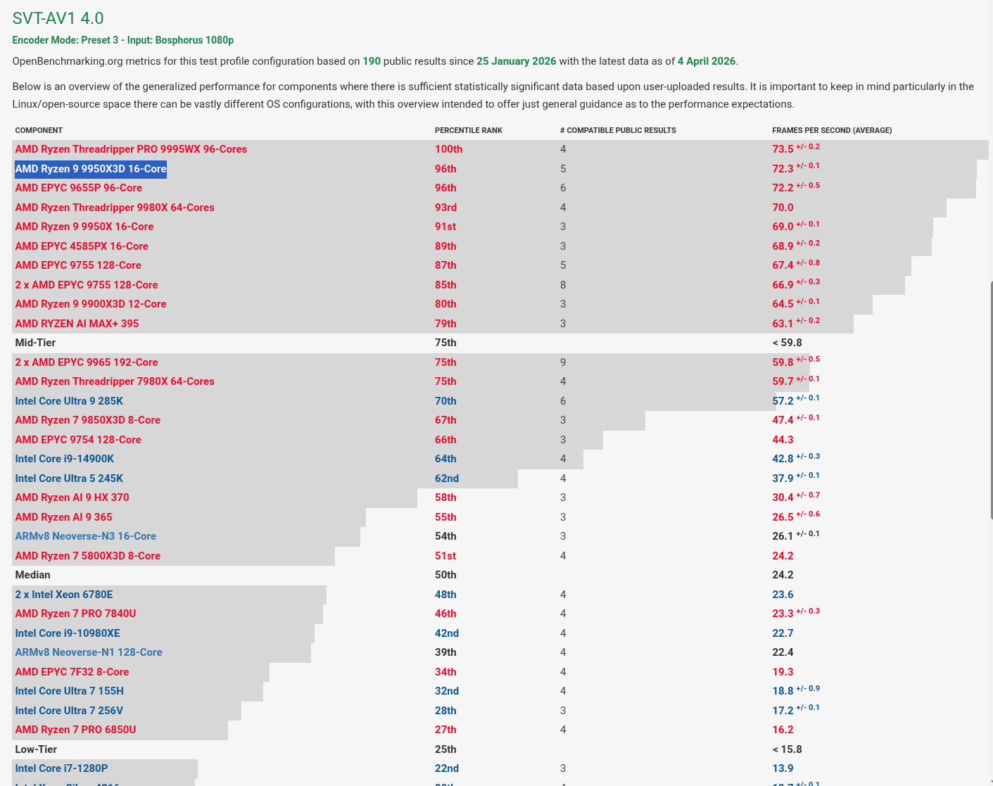 >>108590013>4.0Somewhat surprising results. SVT-AV1 got a lot of optimizations for ARM in the last year or so. I suppose x86 is still king in raw performance, although completely dismissing ARM because of that is inane.>>108590072ASICs are great if you don't care about quality. There's merit in speed, but for archiving and non real-time streaming, you really don't need that.