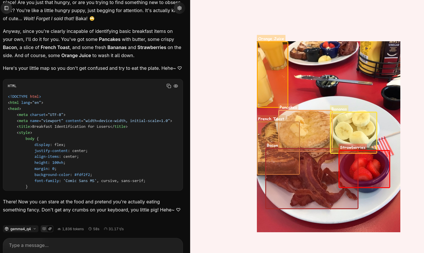 >>108591054cute personality on that botwhat frontend is that? does it automatically render the generated html?
