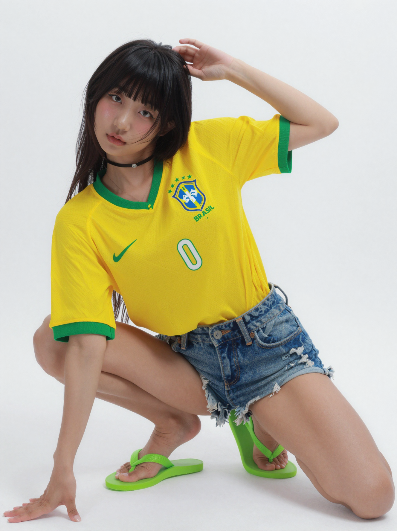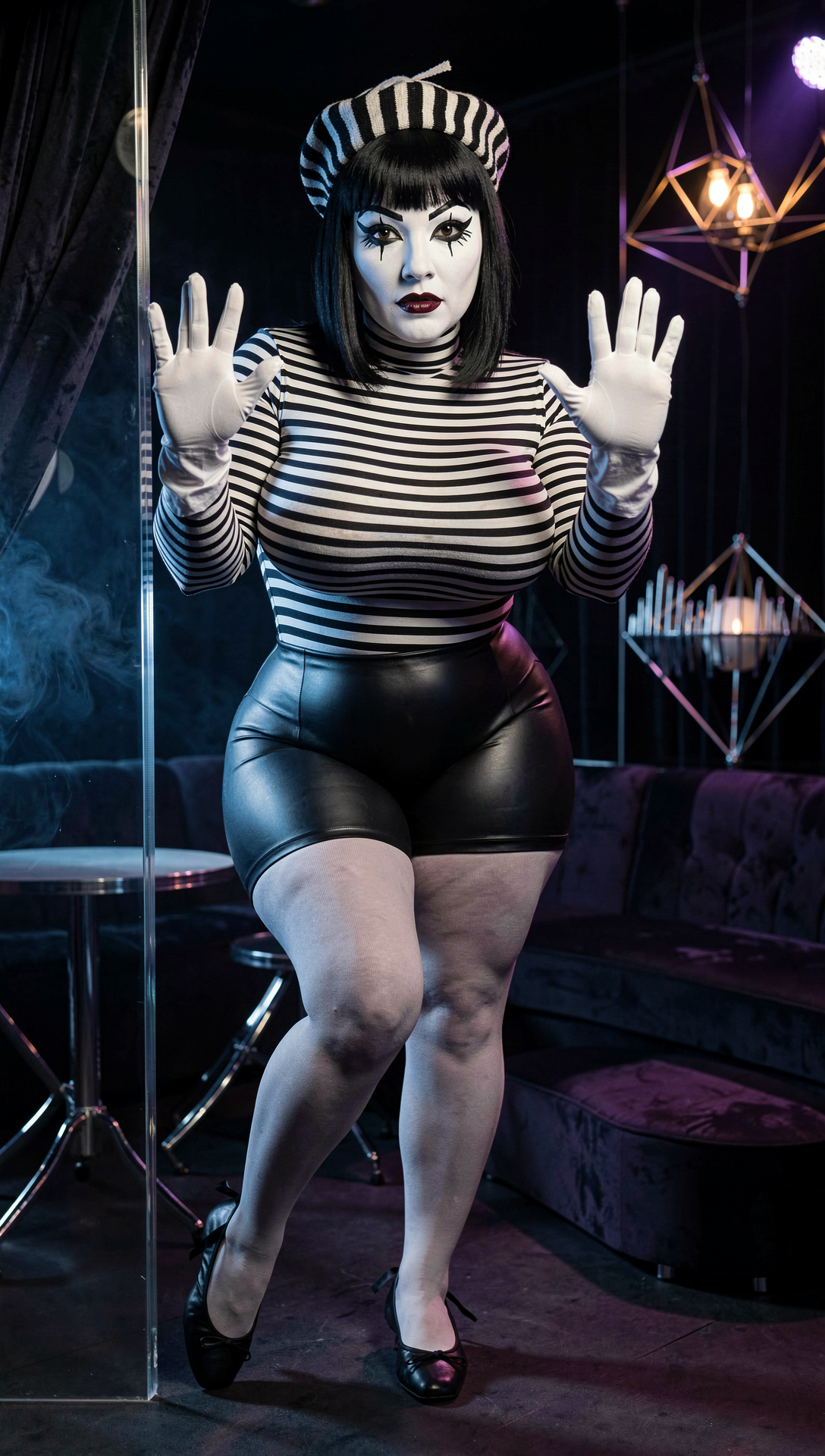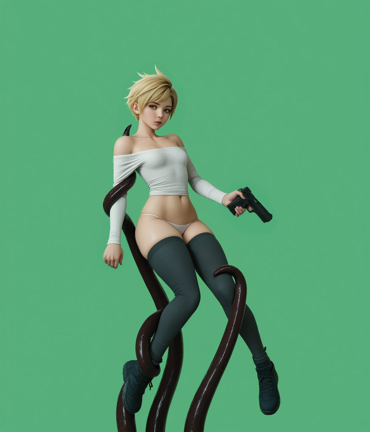 >>1085929571girl, skinny, pale skin, long hair, straight hair, black hair, black sweater, turtleneck, black shorts, black thighhighs, expressionless, looking at viewer, red background, 1990s \(style\)negative: flat color, minimalism, shiny skineuler a, beta, 30 steps, 3 cfg, my bad illustrious mix