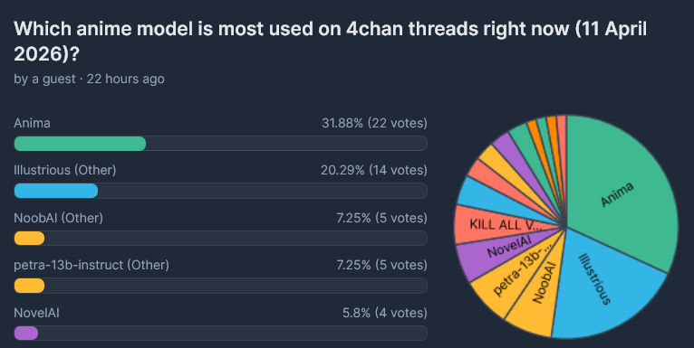 >>108592078Unserious poll I agree but anima and sdxl are roughly equal if you add all sdxls together