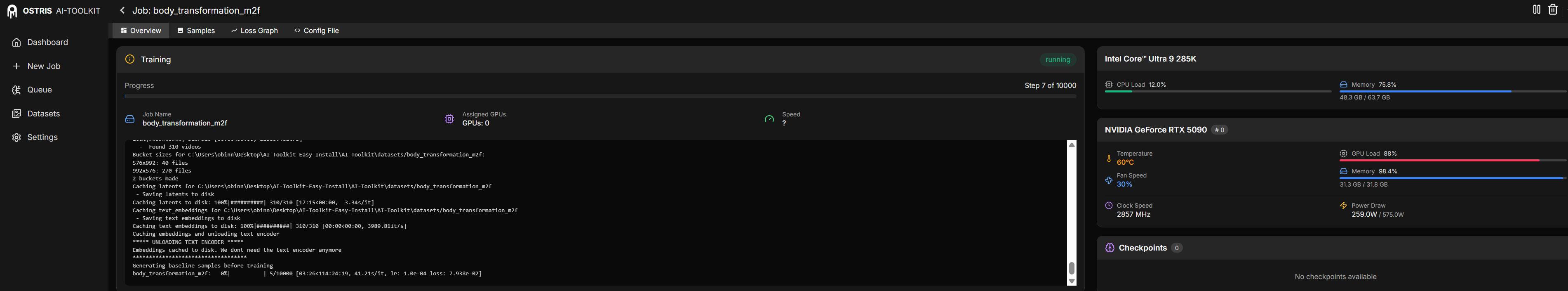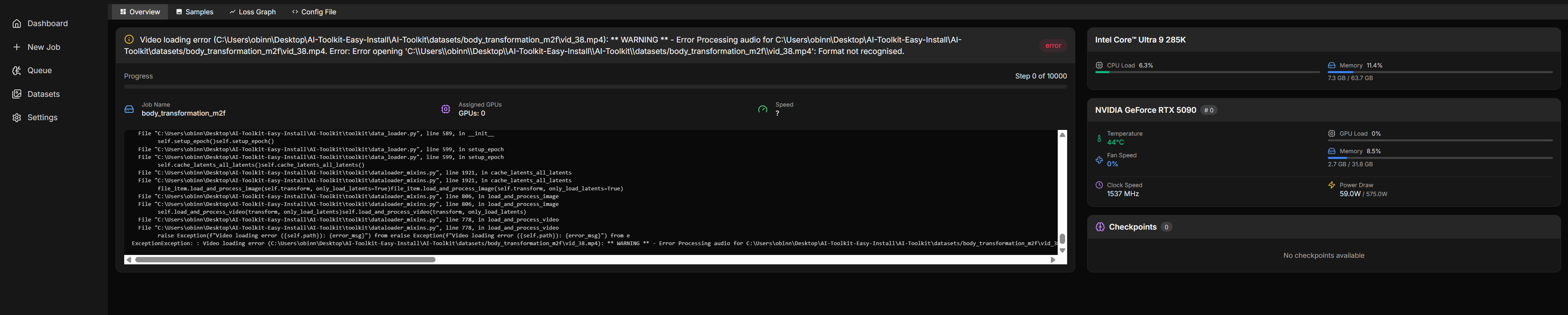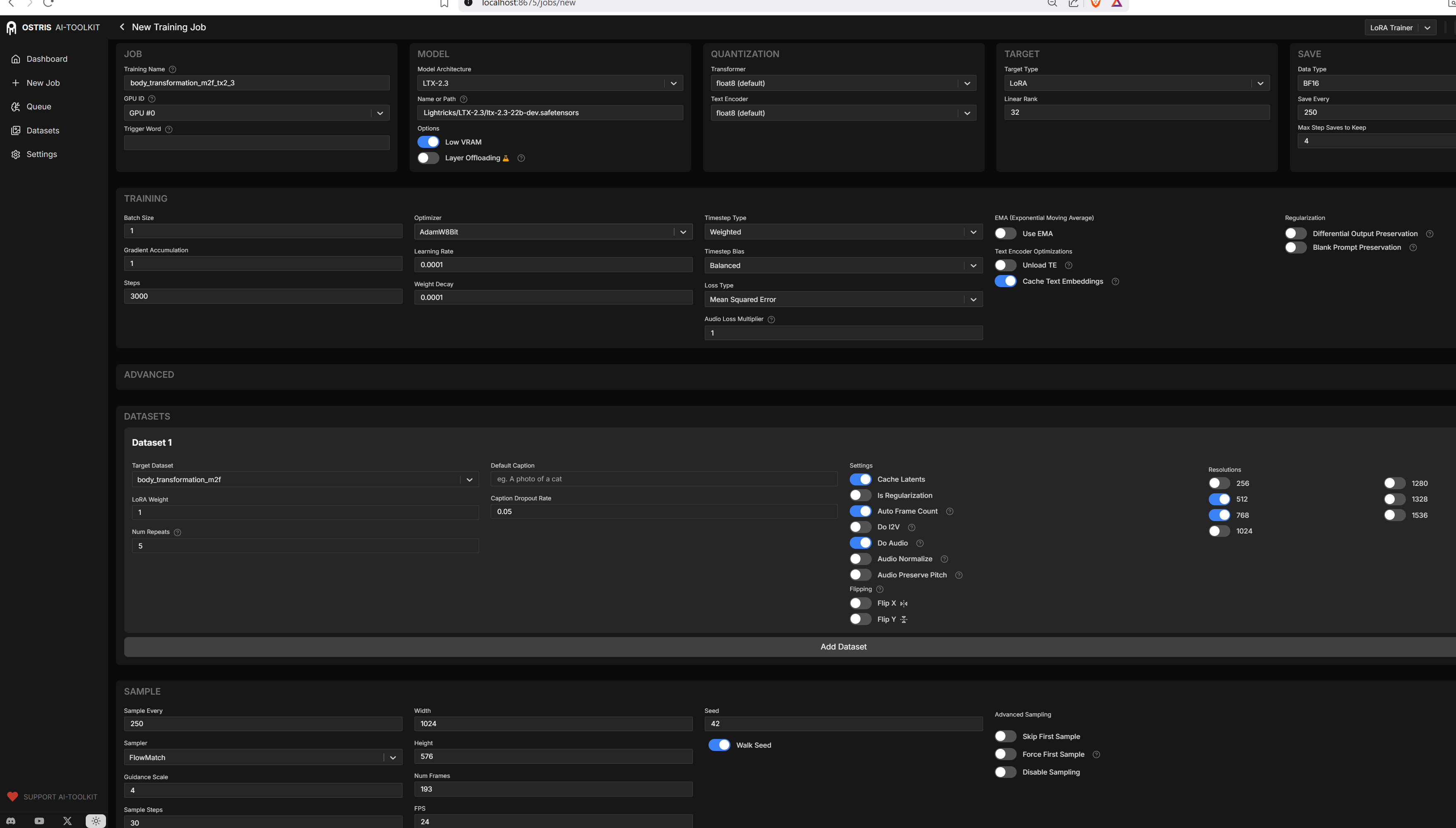 >>108595937for some reason clicking the "do audio" slider kept giving me error so i had to disable it. the training work and its was 30sec/it after an 1 hour. ran it for 8 hours and got it at 1000steps out of 6000 steps with 4 repeats at learning rate of 0.0012. i paused the training and tested the results and the audio is absolute dogshit. AI toolkit really good for this shit. please help me out with betting setting solution.https://litter.catbox.moe/jaeohg.mp4https://litter.catbox.moe/6ni1ue.mp4