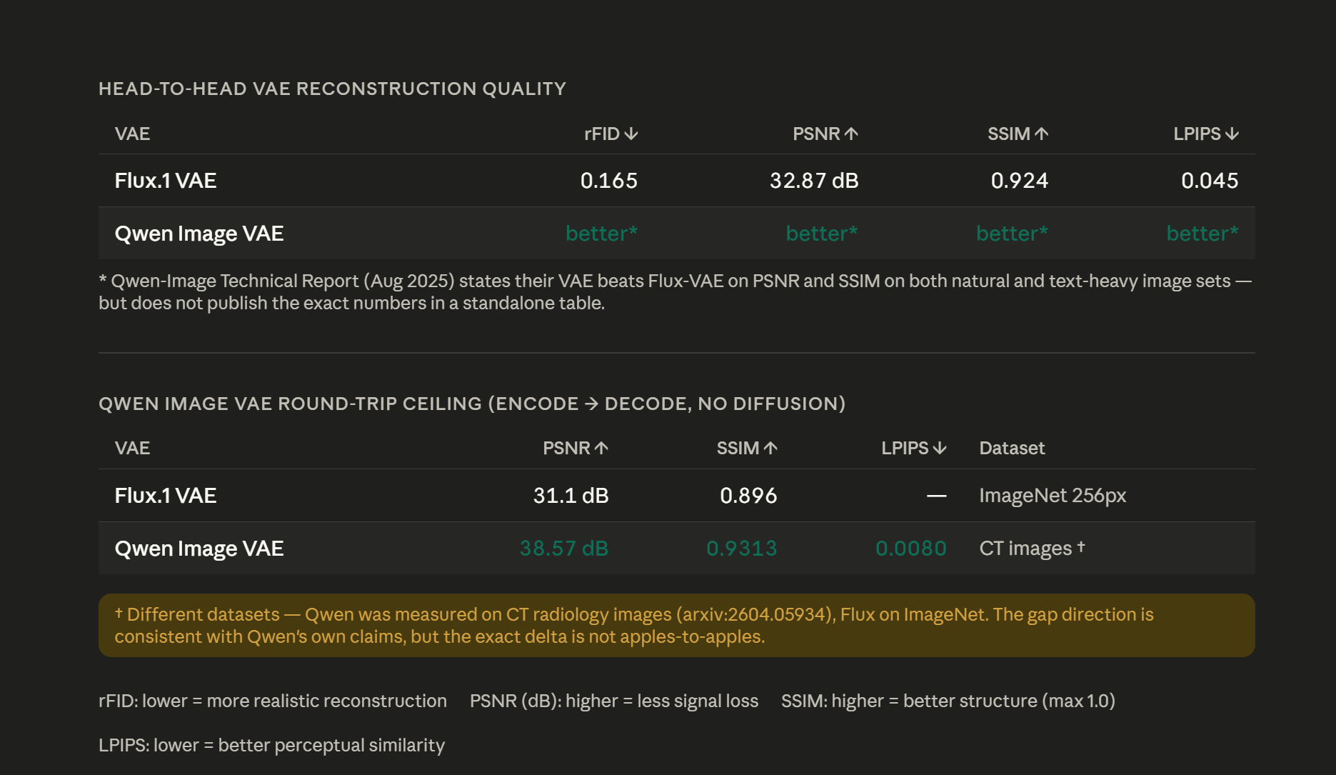 >>108596347>* Qwen-Image Technical Report (Aug 2025) states their VAE beats Flux-VAE on PSNR and SSIM on both natural and text-heavy image sets — but does not publish the exact numbers in a standalone table.chinks be like: "trust me bro"