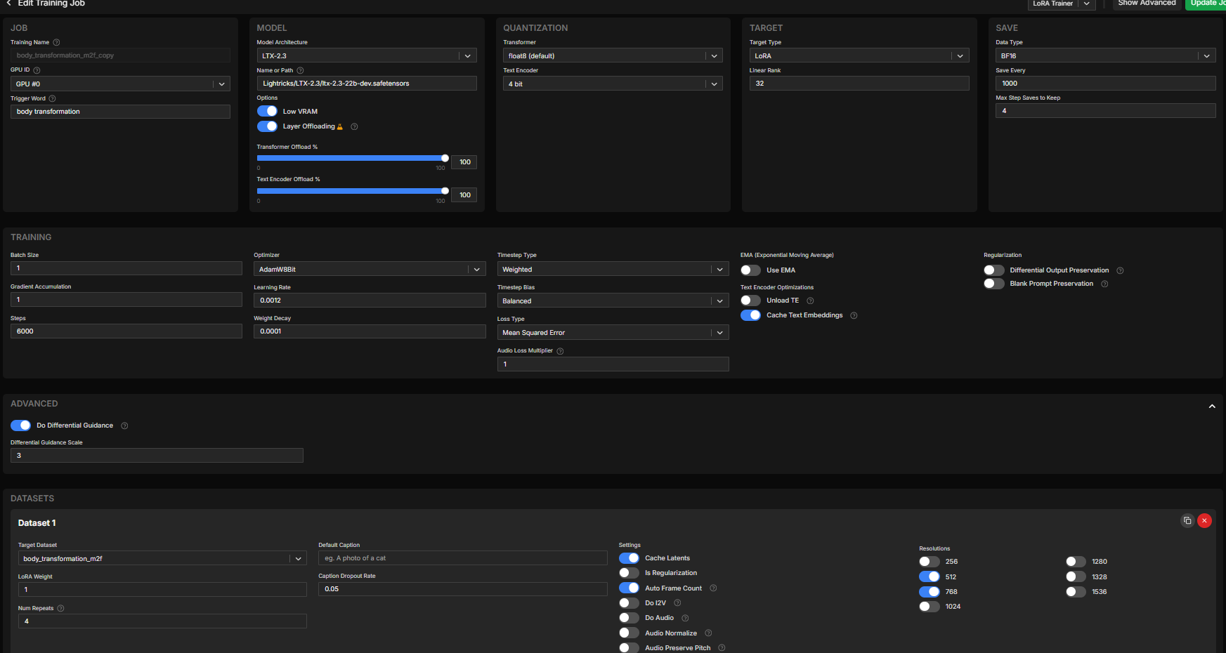 >>108594752Post config.Never trained a video lora but seems too slow.You probably have weights in fp32 and want them in something accelerated like fp8 instead.
