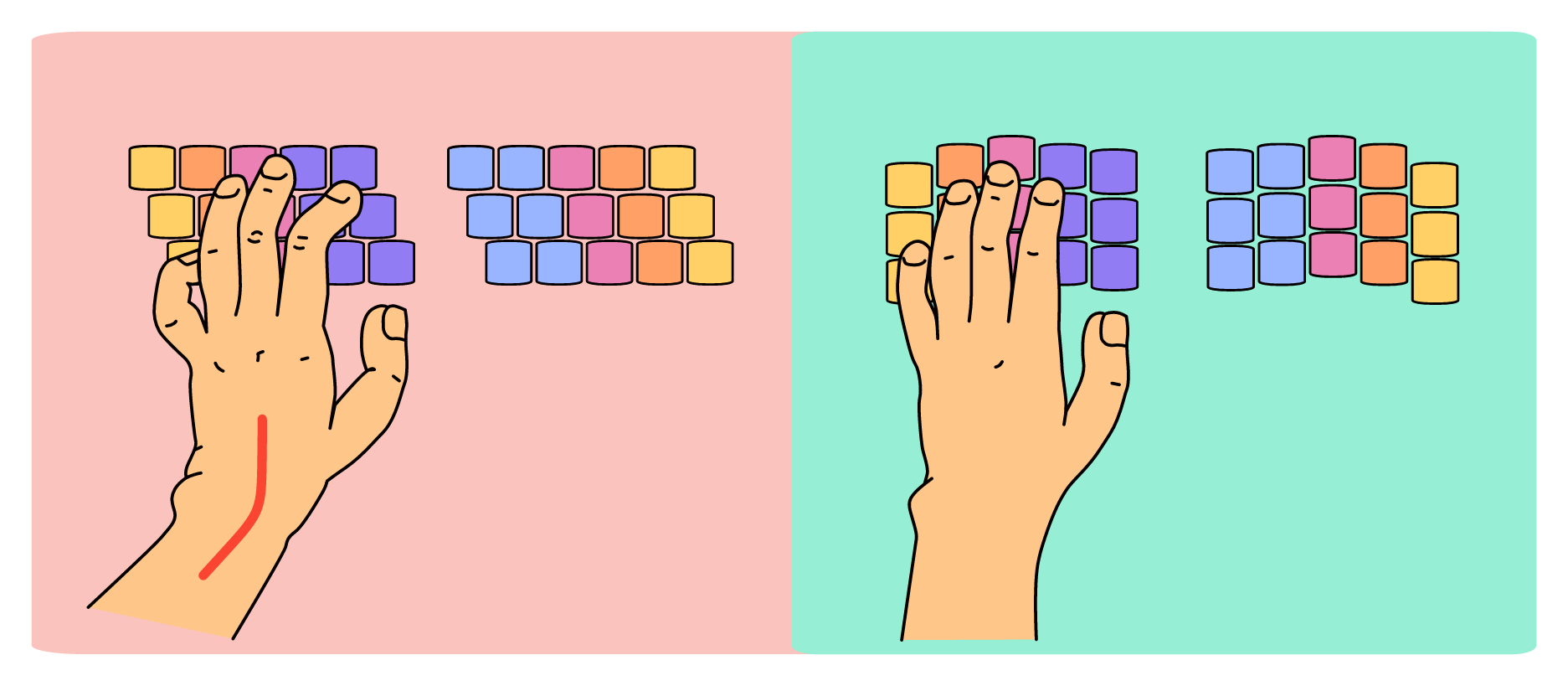 >>108596784make some cardboard mock up of both layoutspractice your hand posture both ways for half an hourshould give you more than a fair idea