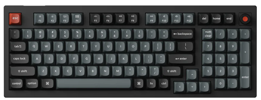 Going with this. 96% honestly looks neat and I'd like more space on my desktop but I can't seem to find one that has both a volume knob and the print screen key intact (while staying in budget). They seem to only have one or the other.