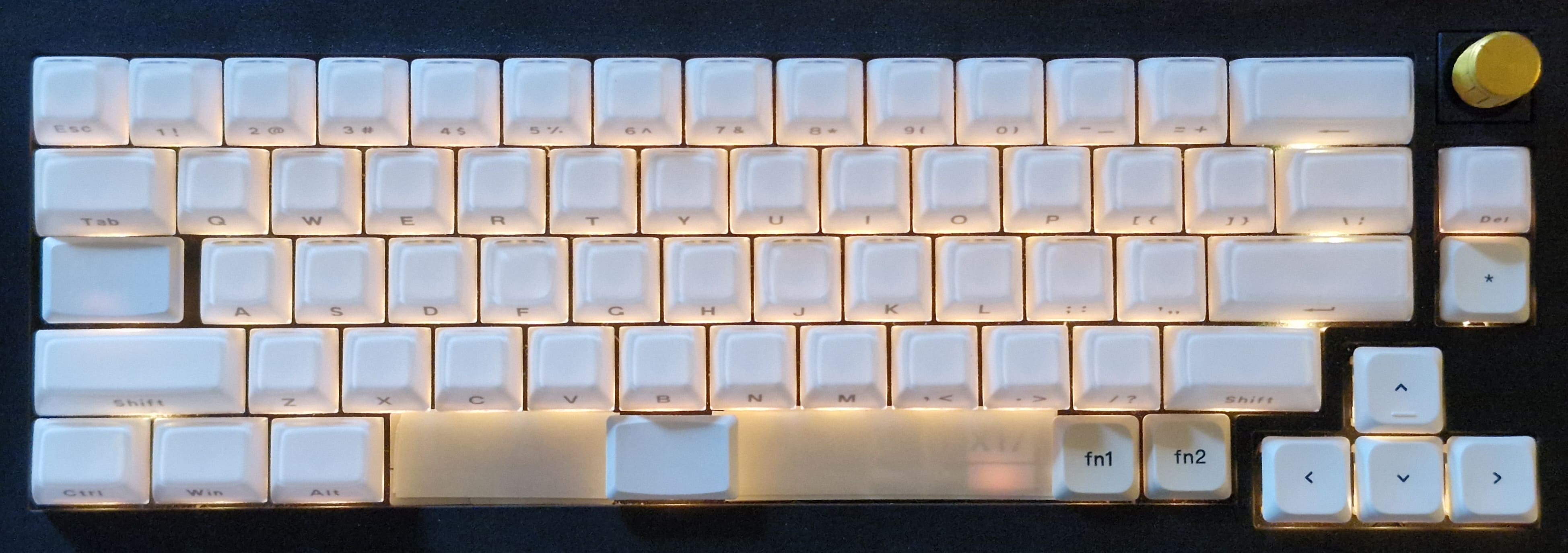>>108607305>>108607865Typing in the dark is why I got these keycaps. Amazon shine through but black on white so they are easily visible in daylight as well.