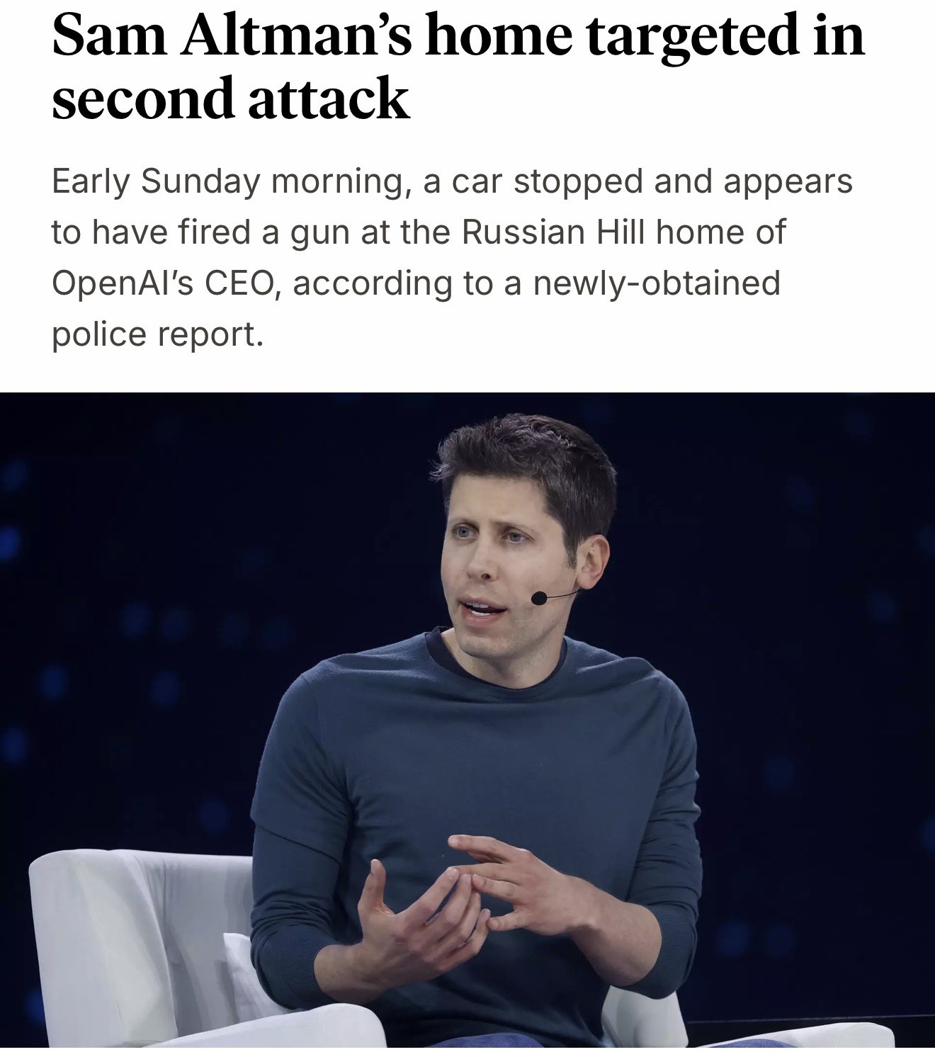 >>108593772>>108593952That's just an attempt to intimidate him, the guys doing these attacks seems to be professionals. For public it also will look less suspicious if Altman will die during long, seemingly not connected chains of minor attacks and accidents. They may even stage suicide or overdose on some drugs and everyone will be believing that it's just out of stress.>>108595415 wrote it like a faggot but he's right. It's either his investors or government that want him gone due to OpenAI and everything surrounding it being generally speaking net negative for everyone. Remove Altman, put some puppet in his place, start restructuring OpenAI into something actually functional or drain it out of money completely.