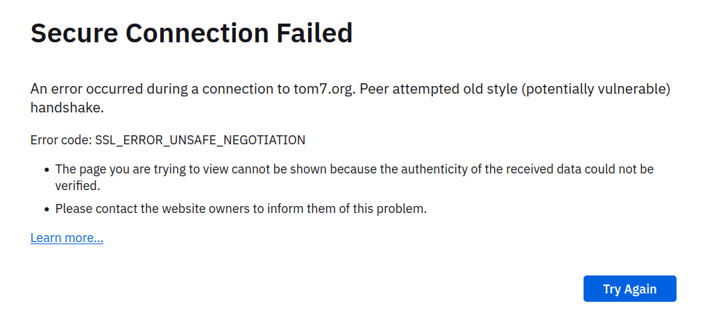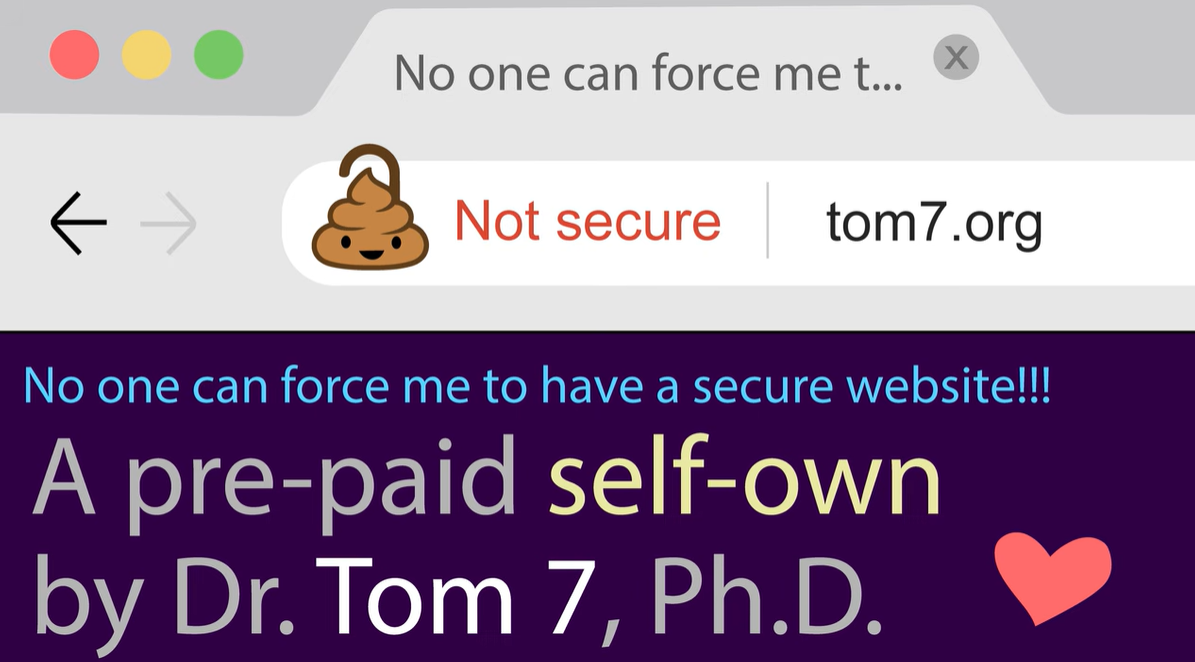 >>108609672the video is complaining about just that. that his personal website that has been there since the '90s that doesn't handle anything private at all is now causing big scary warnings in modern browsers simply because it's not https. so he goes full malicious compliance by rolling his own https proxy encryption handling that is as deliberately hilariously insecure as possible. if you've seen any of his previous videos you know it's gonna be gud