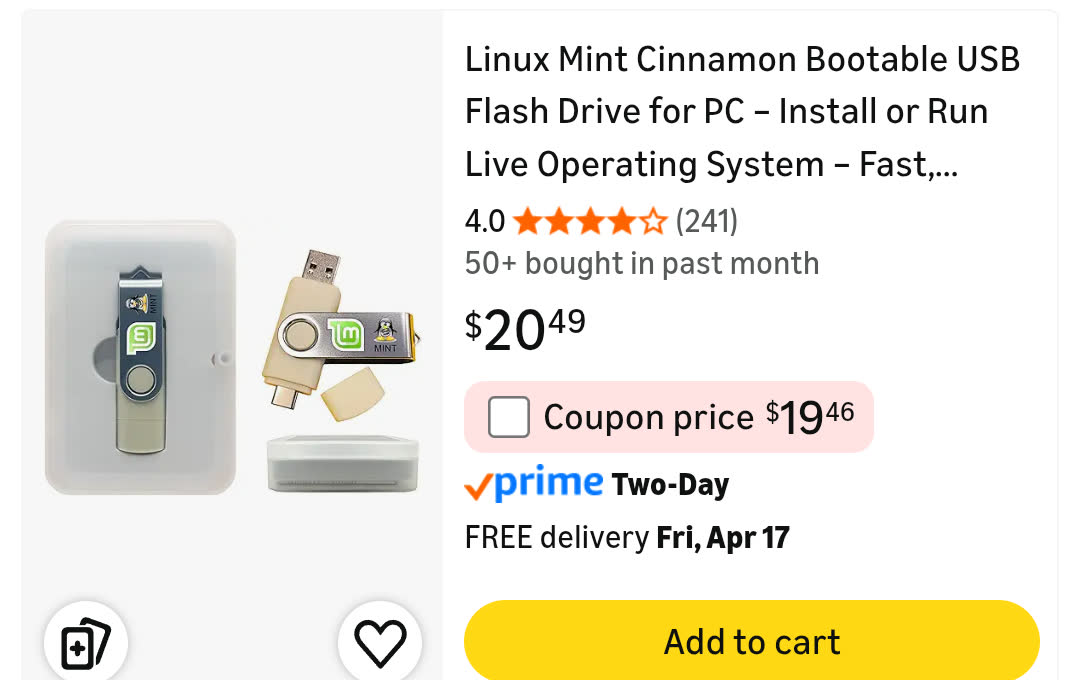 >>108608555>There's no way people buy a USB stick off the internet and boot into it, I simply refuse to believe it218 sold it says
