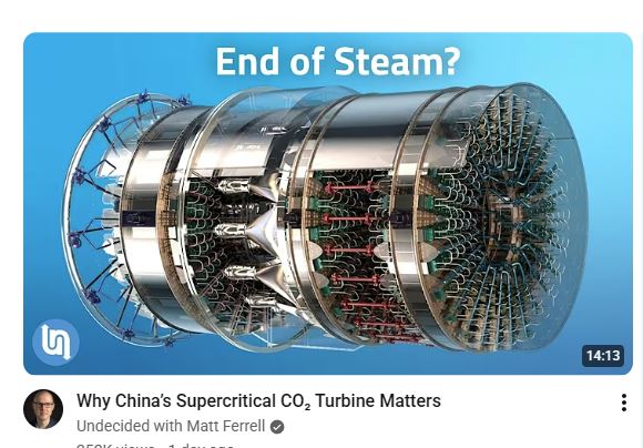 >>108610282Steam turbines will be replaced by supercritical CO2 turbines.They are much smaller (so eventually will become cheaper to build) and have better thermal efficiency.
