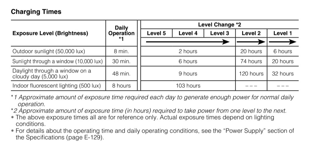 If you wear it outside for 1 or 2 days a month, that's more than enough to recharge it. I've got one of the models with analog hands and I fully charged it over the course of a couple weeks of daily wear.