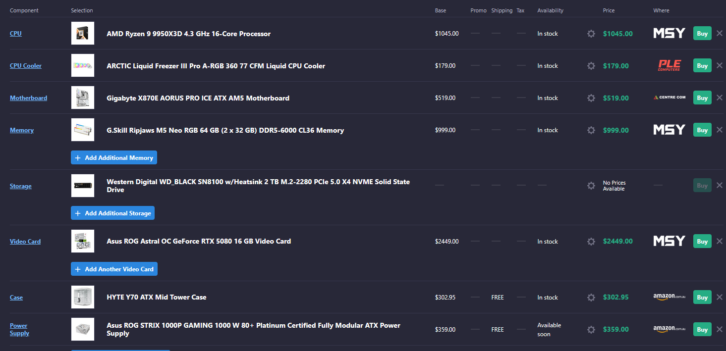Can i get some help with my gaming PC build? Im from australia and my budget is about $5k AUD I want to keep the build as WHITE as possible. I may upgrade to a 5090 down the road any suggestions for downgrades