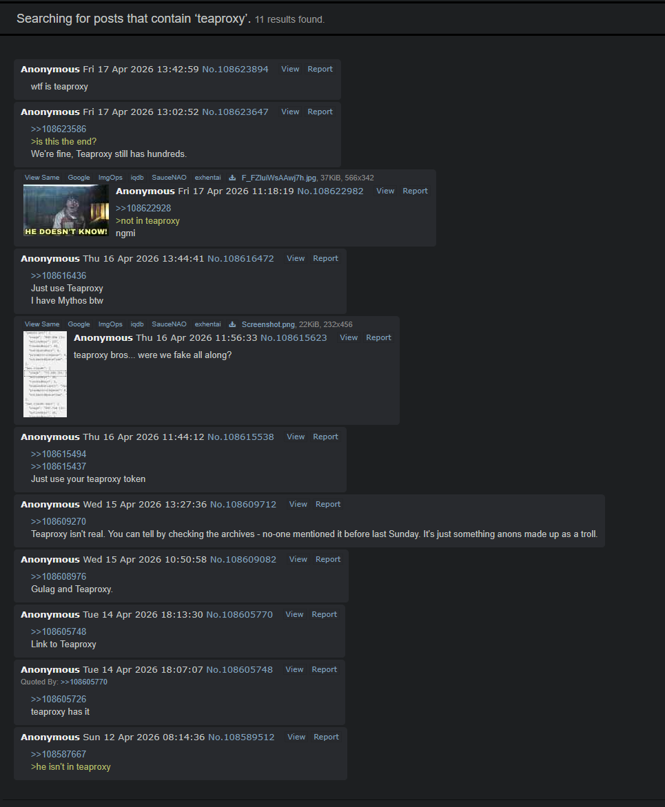 >>108624225I heard that teaproxy is a new name for fischl.. which is apparently a proxy for a Discord clique.