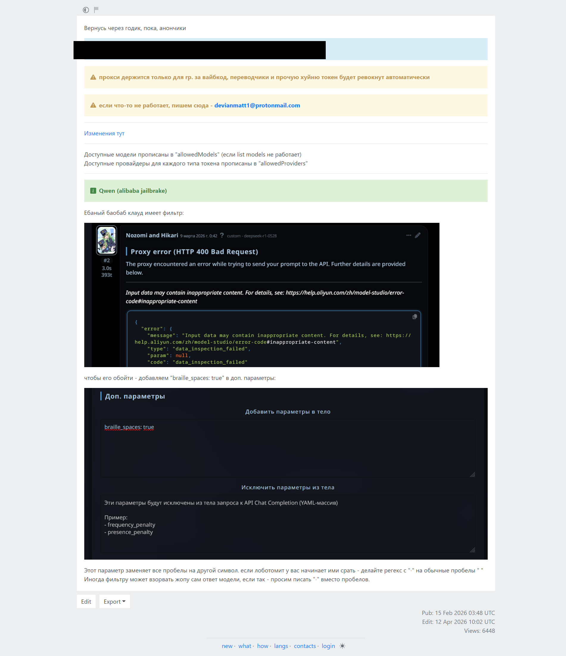 >>108625139damn, good stuff used to be posted here, on chub it's all just slop now>>108625148>no one want to host proxies because of "muh gatekeeping" and people not wanting to share keysyeah, same old story I guess... i miss miniproxy...