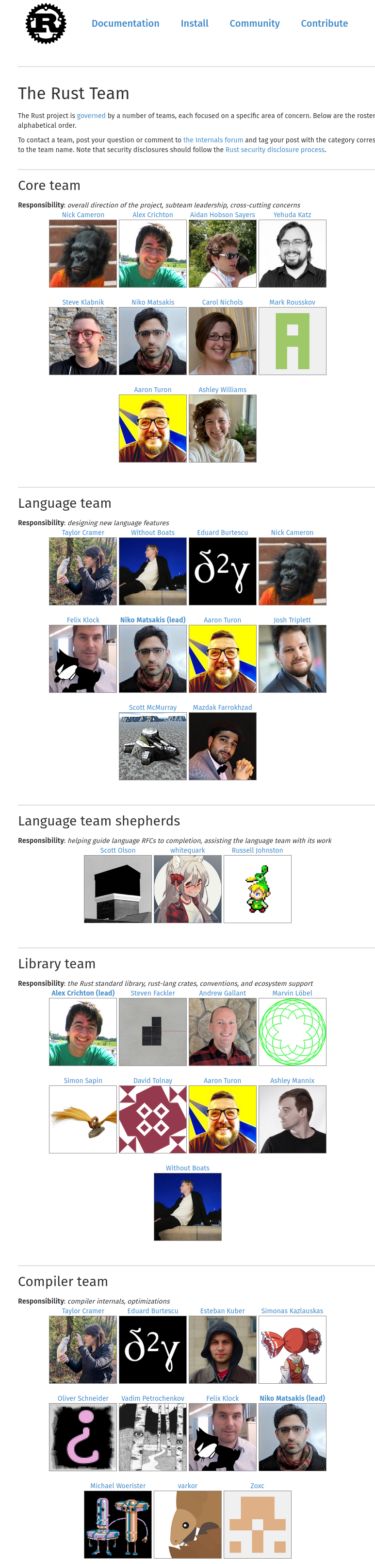 op is probably a tranny. they love inflating their actually relatively miniscule contribution under the guise of such /g/eet "haha look trannies" threads.you can see the actual top-level teams here:https://rust-lang.org/governance/picrel is the current lang team (the most important one).you can see all 119 teams and their members here:https://rust-lang.org/governance/teams/no such a thing as "rust maintainers team".op's pic comes from a site called RustNL, a dutch community/non-profit site.https://rustnl.org/maintainers/that is not to say that all these names are unknown or completely irrelevant. but they are not THAT important either.a bunch of trannies and their friends can literally create such a site for any mainstream language.and none of this is actually important or technically relevant in any case. only tech illiterates would fall for such ploys, and only an illogical person would care regardless.suppose trannies' contribution to rust was actually 60/70/80%, a logical and a meritocratic would care about the technical merit of that contribution not its source (assuming there are no restrictions on usage which is the case).can't-do genderists hate meritocracy of course (see The Post-Meritocracy Manifesto), so can-do trannies actually cause them (the can't-doers) a confliction of good propaganda vs. envy lol