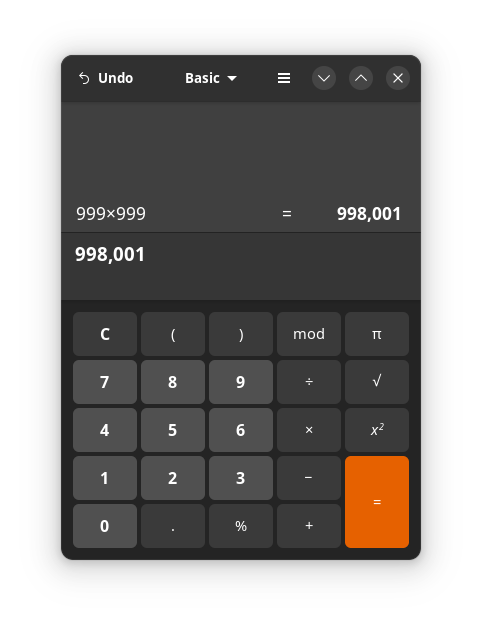 >>108641592Or they install some other better calculator. And this is the point with linux. The devs dont give a shitThe desktop developers dont even use their own desktops. They are actively destroying linux.Its crazy that a calc app doesnt show the numbers your typing in that you NEED to see as big and with commas, so you know what you're typing.