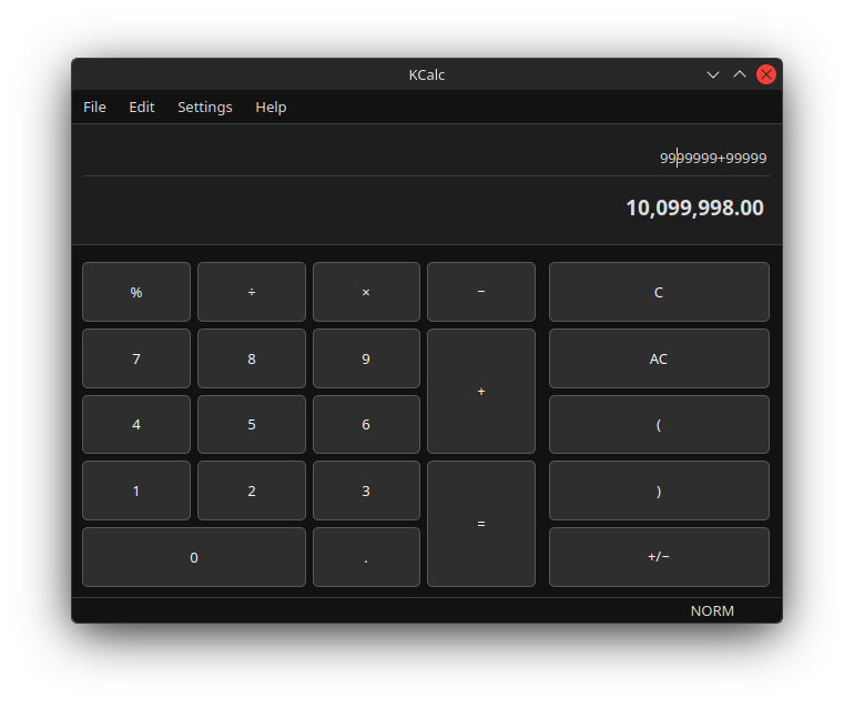>>108641612This is GENUINELY what the KDE devs think a calculator should function and look like. How are you supposed to know what number you are typing in the top with that small ass text(you can't change it) with zero commas.This is how kcalc looks by default