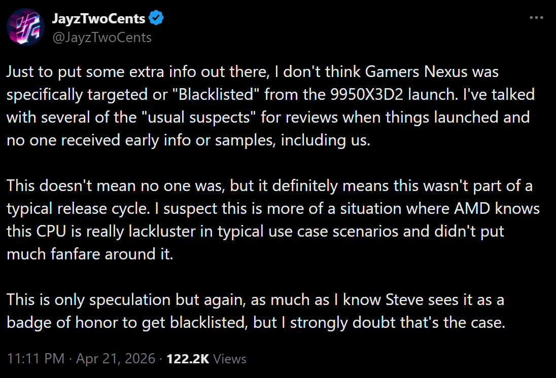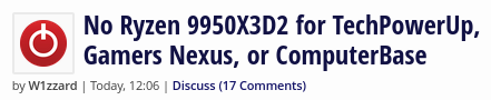 they're not the only onehttps://www.techpowerup.com/348400/no-ryzen-9950x3d2-for-techpowerup-gamers-nexus-or-computerbase