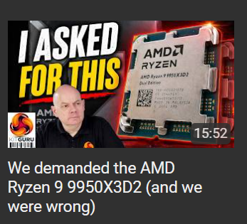 >>108653630The funny part is that he drops this video on the day of the 9950X3D2 embargo lifting. He knows all the other channels are dropping videos so he uses the timing to boost his video plugging his "Blacklist" t-shirt while spinning a story on how he badgered a 3rd-party rep for AMD marketing about the Melenia documentary.