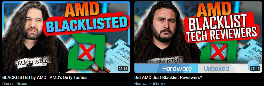 >AMD is now blacklisting Gamers Nexus (https://youtu.be/p6O4LCmah98)>refuses to even answer questions about dropping support for 2 year old hardwareWhat happened to the scrappy, lovable company that was taking on the evil empires of Intel and Nvidia?