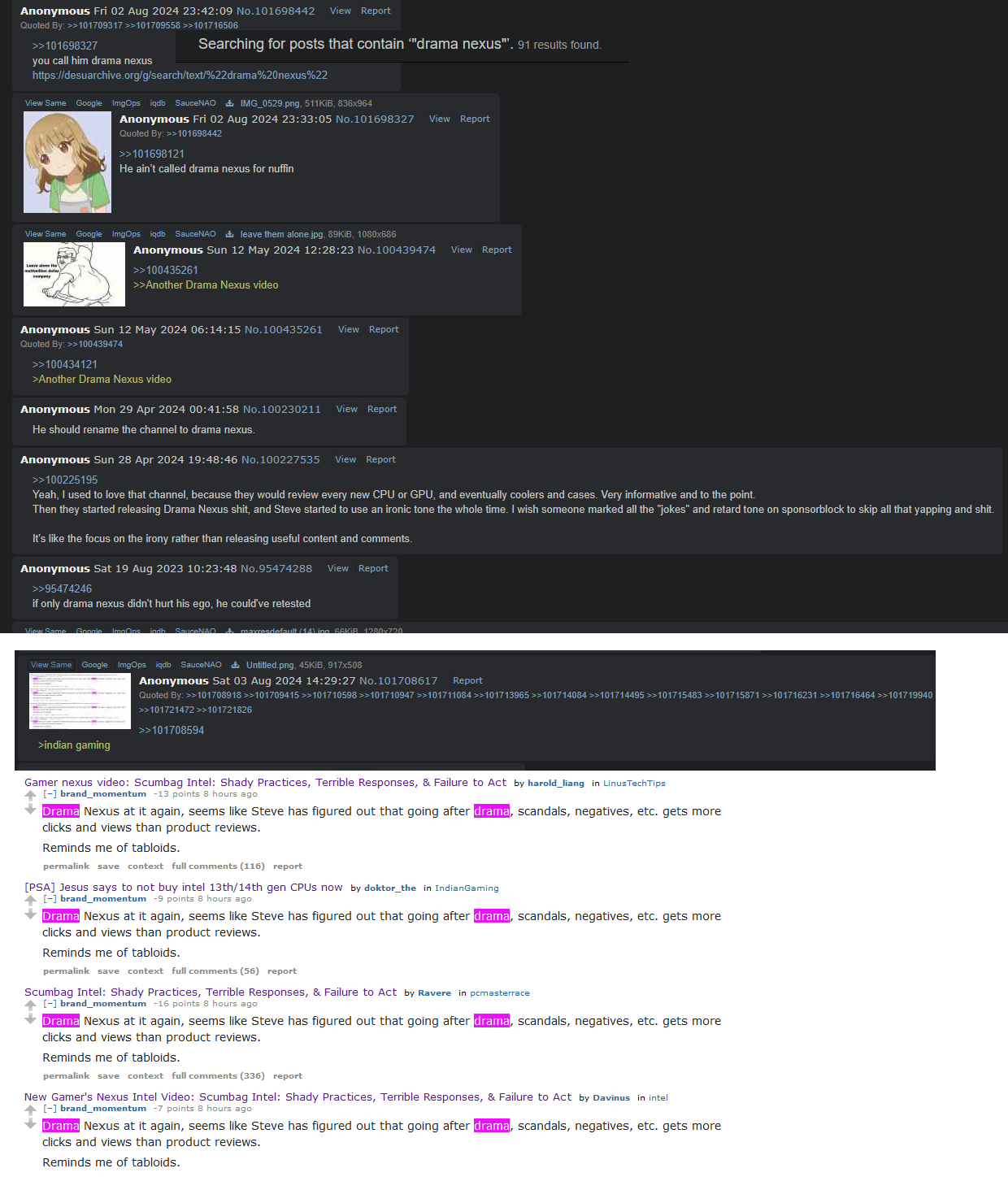 >>108652166reddit's taking this news very very hard well, except for r/linustechtips who are celebrating and buying drums of jet fuel to gift to Linus (it's cheaper than you think! Epic Win!)