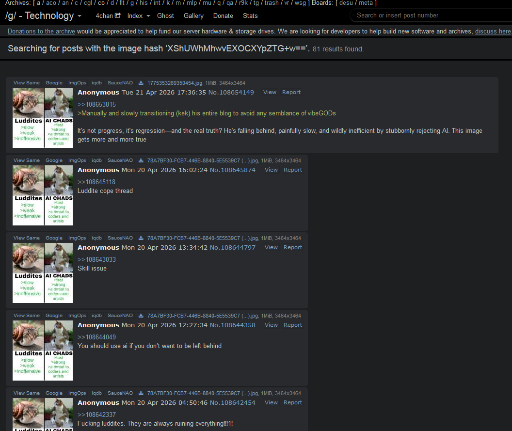 why did you post this? AImaxxers really do feel like win11 tards who seethe with impotent rage at others who deny what they believe in and desperately seek the approval of their ingroup circlejerk by cross posting incidents to where they believe they belong (ground zero for AI ie. /g/) for naming and shaming.