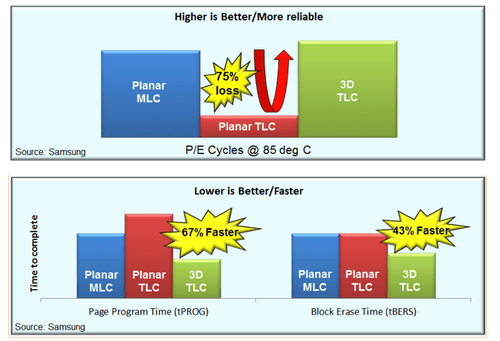 >>1086547961. Cells were packed too tightlyIn 2D NAND, memory cells sit side-by-side on a flat surface. As process nodes shrank (down to ~15–20 nm), the cells got extremely close together. This caused cell-to-cell interference—when you program one cell, it can unintentionally disturb its neighbors. That leads to bit errors.2. Fewer electrons per cellEach cell stores data as electrical charge. In tiny 2D cells, there are very few electrons representing a value. Lose just a handful, and the stored bit can flip. This made data retention worse over time.3. More susceptibility to wearWriting to NAND involves stressing the insulating layer (tunneling oxide). In small 2D cells, that layer is thinner, so it degrades faster. Result: lower program/erase cycle endurance.4. Higher error rates with MLC/TLCAs 2D NAND evolved to store more bits per cell (MLC TLC), it had to distinguish between more voltage levels in already tiny, noisy cells. That dramatically increased error rates and required heavy error correction.Why 3D NAND is more reliable3D NAND (like vertical stacking used by companies such as Samsung Electronics and Micron Technology) flipped the approach:1. Bigger cells againInstead of shrinking cells further, manufacturers stack them vertically. This allows larger physical cells, which hold more charge and are less error-prone.2. Less interferenceCells are spaced differently in 3D structures, reducing lateral interference compared to tightly packed 2D layouts.3. Thicker insulating layersBecause cells aren’t as aggressively miniaturized, the oxide layers can be thicker, improving durability and endurance.4. Charge trap designMost 3D NAND uses charge trap flash instead of floating gate. It’s more resistant to leakage and defects, improving retention and reliability.