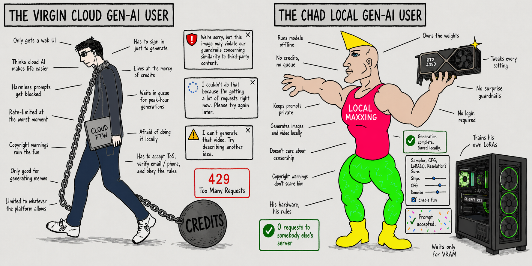 >>108656085Have you not learned anything from the past few years? That's not how it works, especially with SaaS (tools get nerfed, rugpulled by the big corpos) and even more with NSFW content and we're talking about today, not the future you idiot