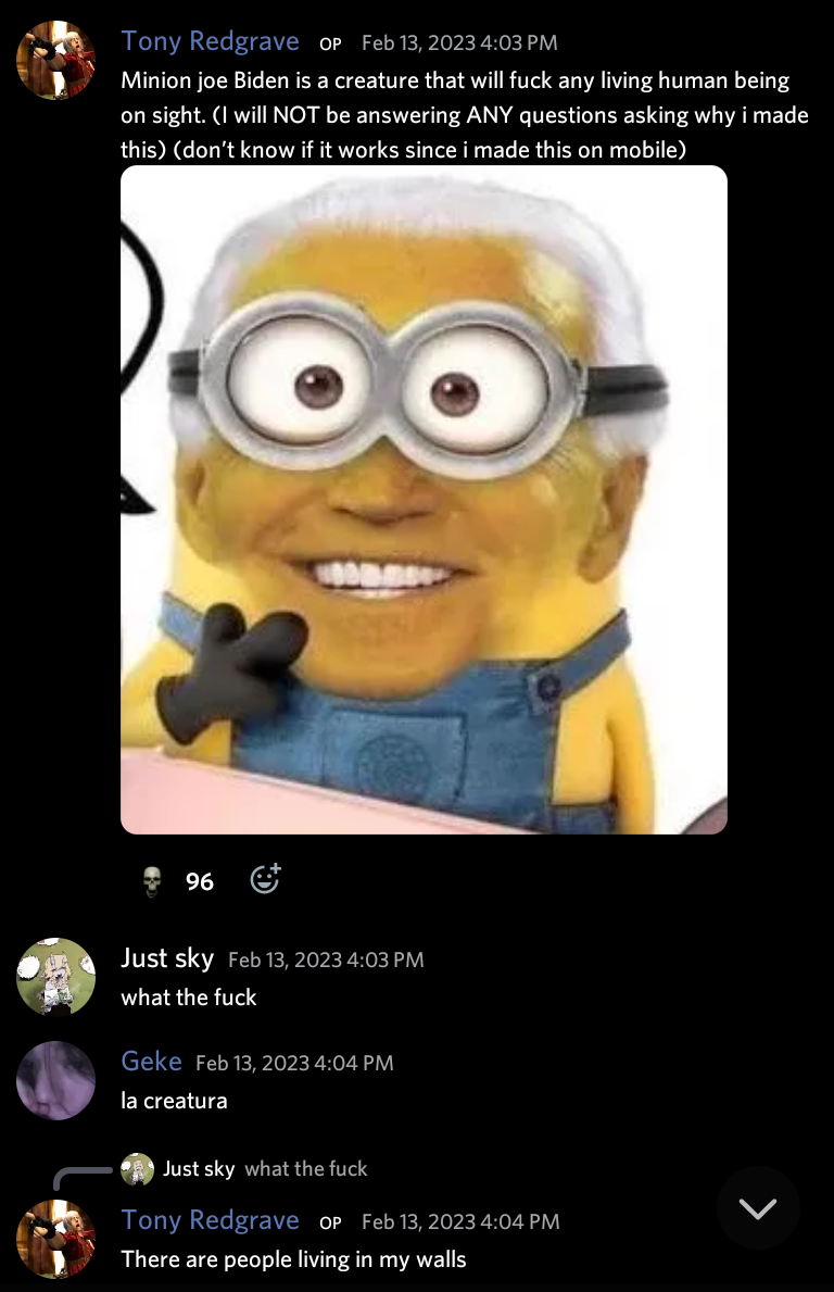 I mean its exactly just like this? Every single charismatic anon I can think of got banned. Branon, Gojo, Moxxie, Mysteryman, Fiz, Pepsi, black Gojo, most botmakies too, they were all funny and smart people who generated a lot of activity whenever they posted here. But the pathetic ego of jannies couldn't have any of that so they banned every single one of them.