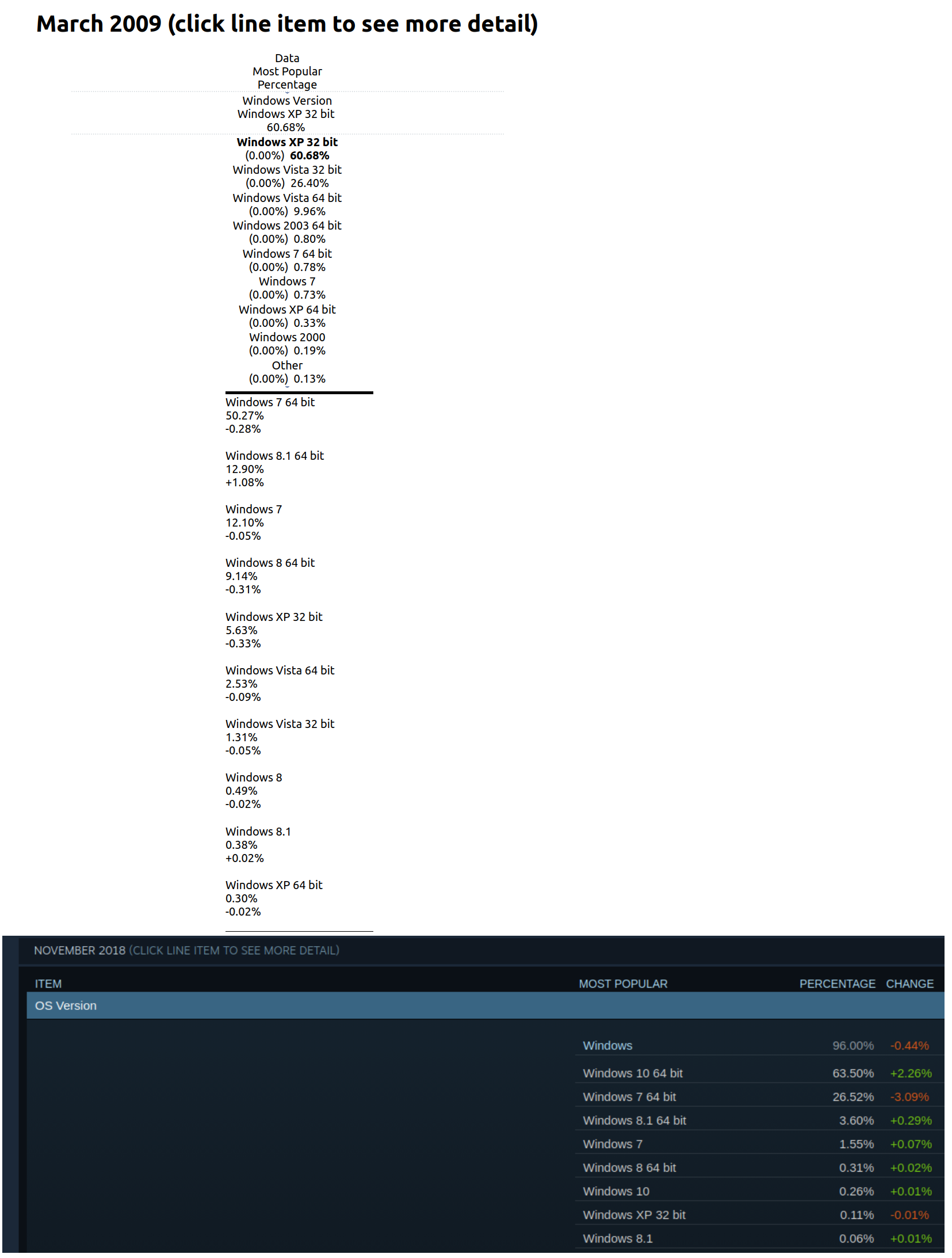 >>108686508but valve didn't stab anyoneyou know who did? microsoftvalve had discontinued xp support 5 years after microsoftin 2009 when microsoft discontinued mainstream support its share was at 61%in 2014 when microsoft discontinued extended support its share was at 6%by the time valve discontinued its support its share went down to 0.1%valve had waited for NINETY NINE POINT EIGHT PERCENT of 2009 xp users and NINETY EIGHT POINT THREE of 2014 xp users to leave