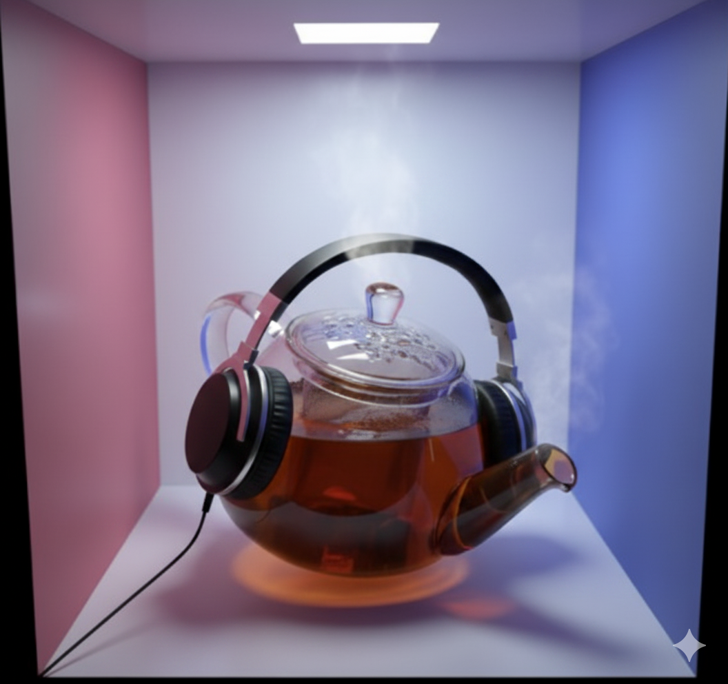 >>108676152Not a cornel lightbox and why is there a glass cup with a spoon? Also my bad but the teapot has to be a specific teapot, the Utah Teapot.The cornell light box and the teapot are actually reference to CG/3D art and not chosen randomly, they have meaning