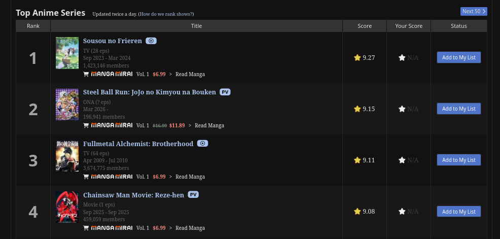 >>108684598>Sep 2023 - Mar 2024>Mar 2026 - (???)>Sep 2025What the fuck happened to MAL? Why did you post this?