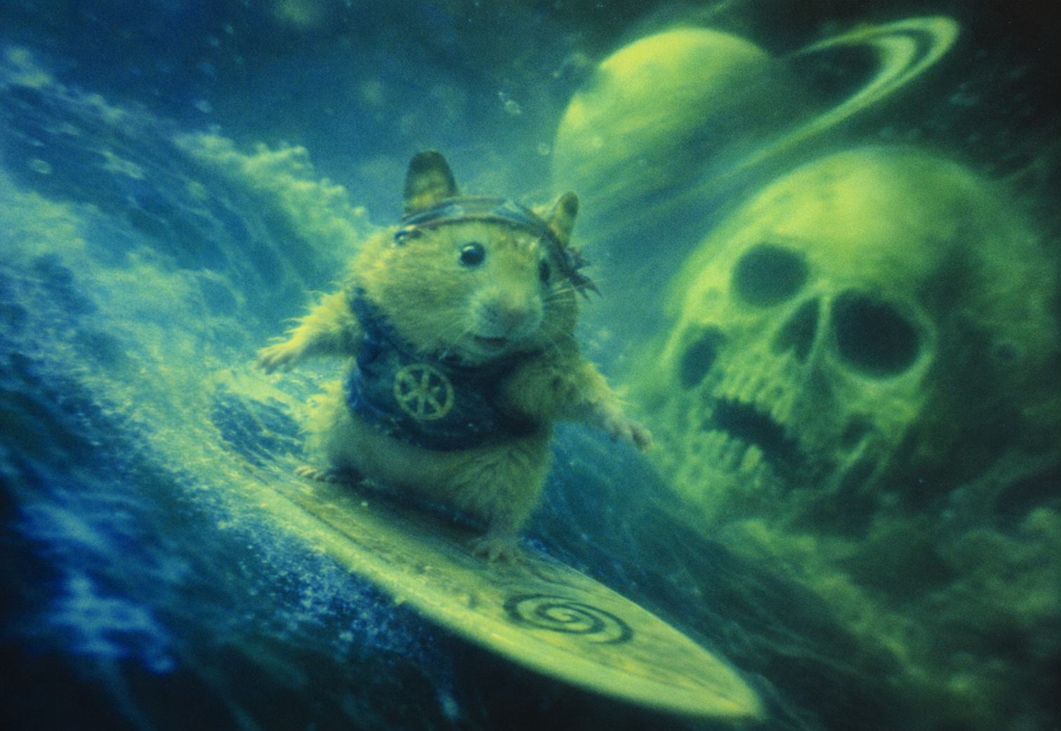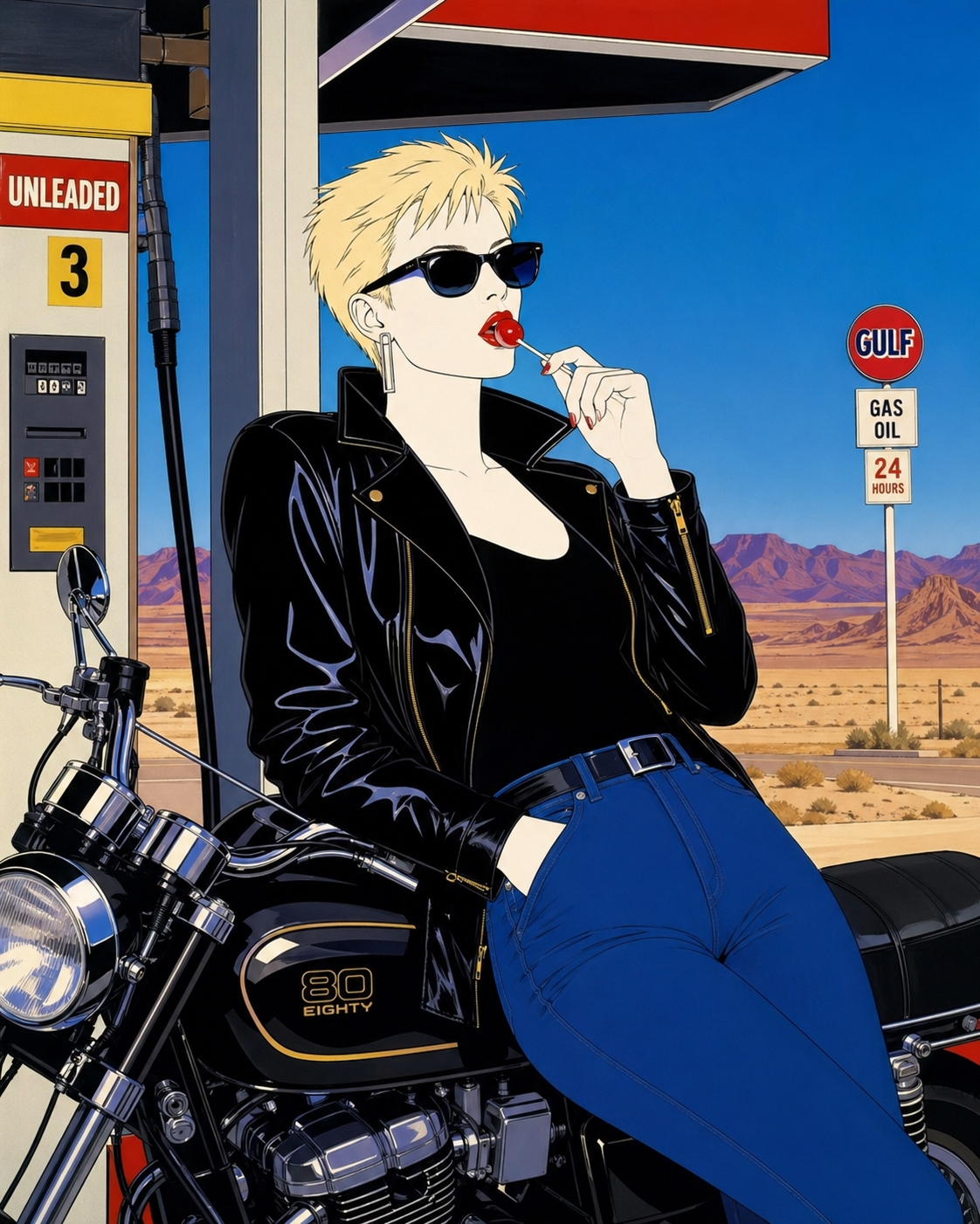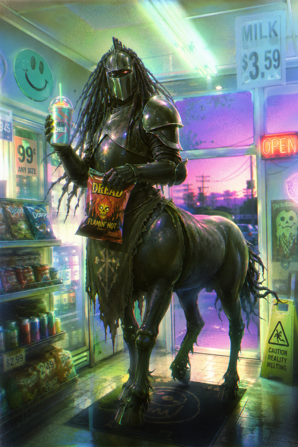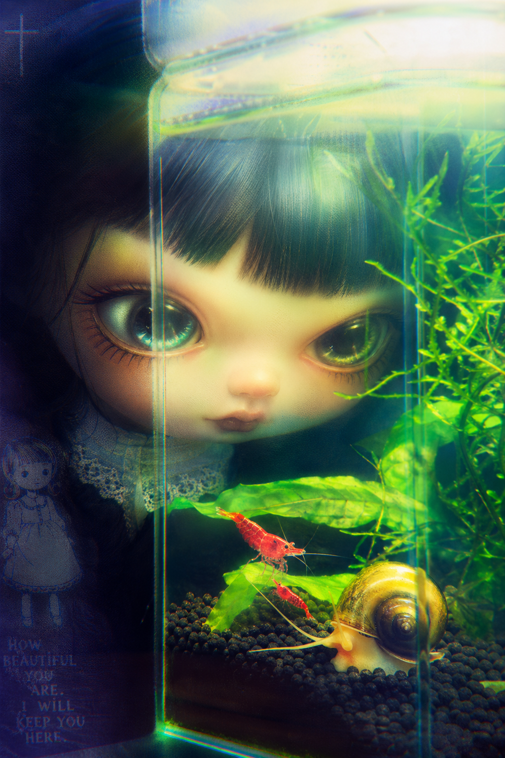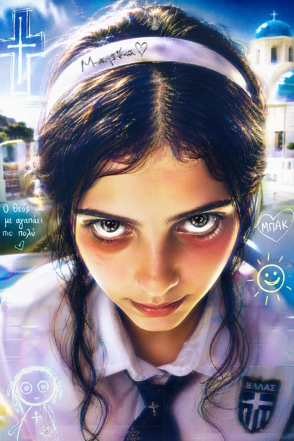 smug girl wearing striped sweater and shorts, lifting up foot. stunned onlooking ghost. pill capsules and and octopus floating in the background.