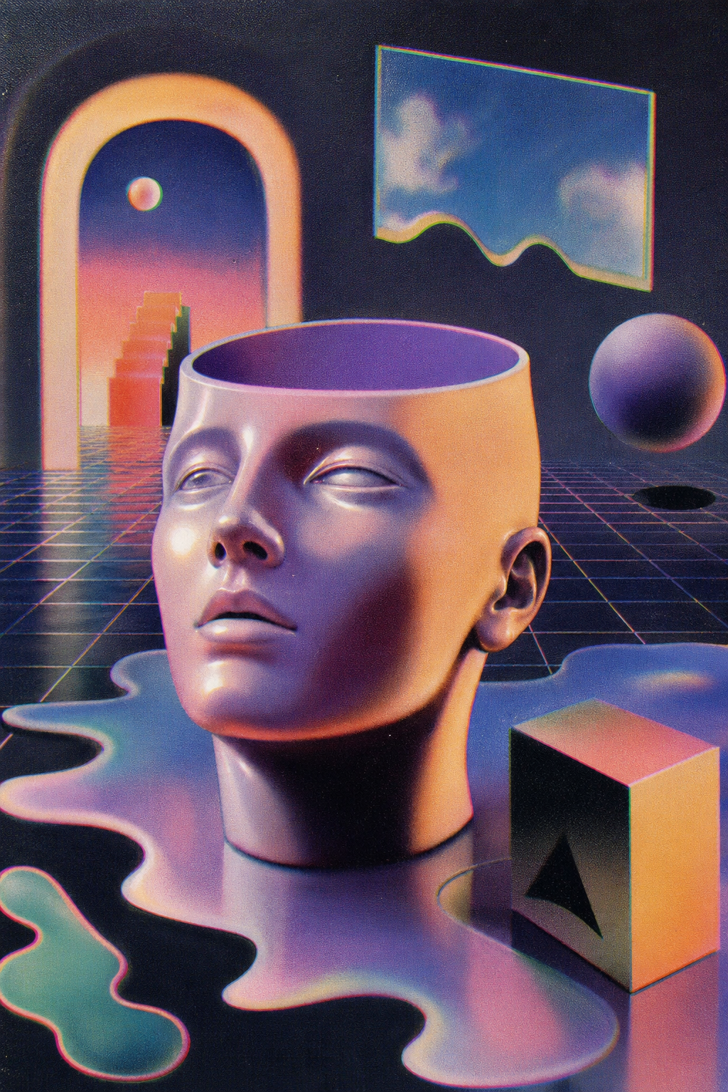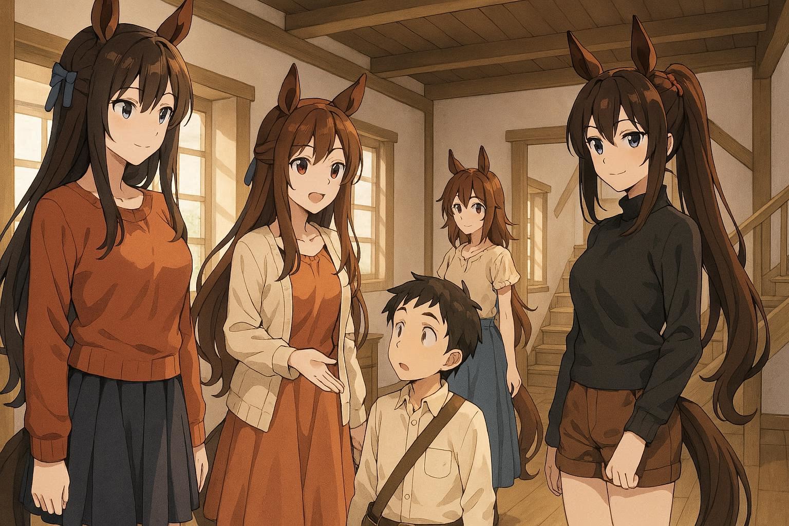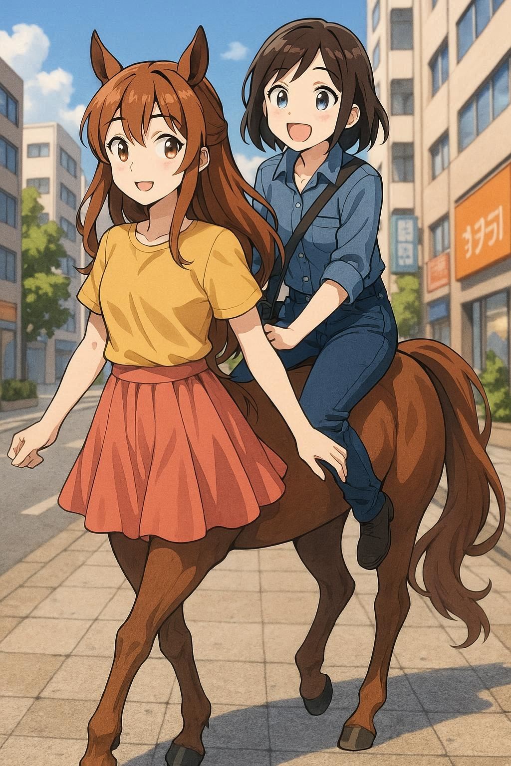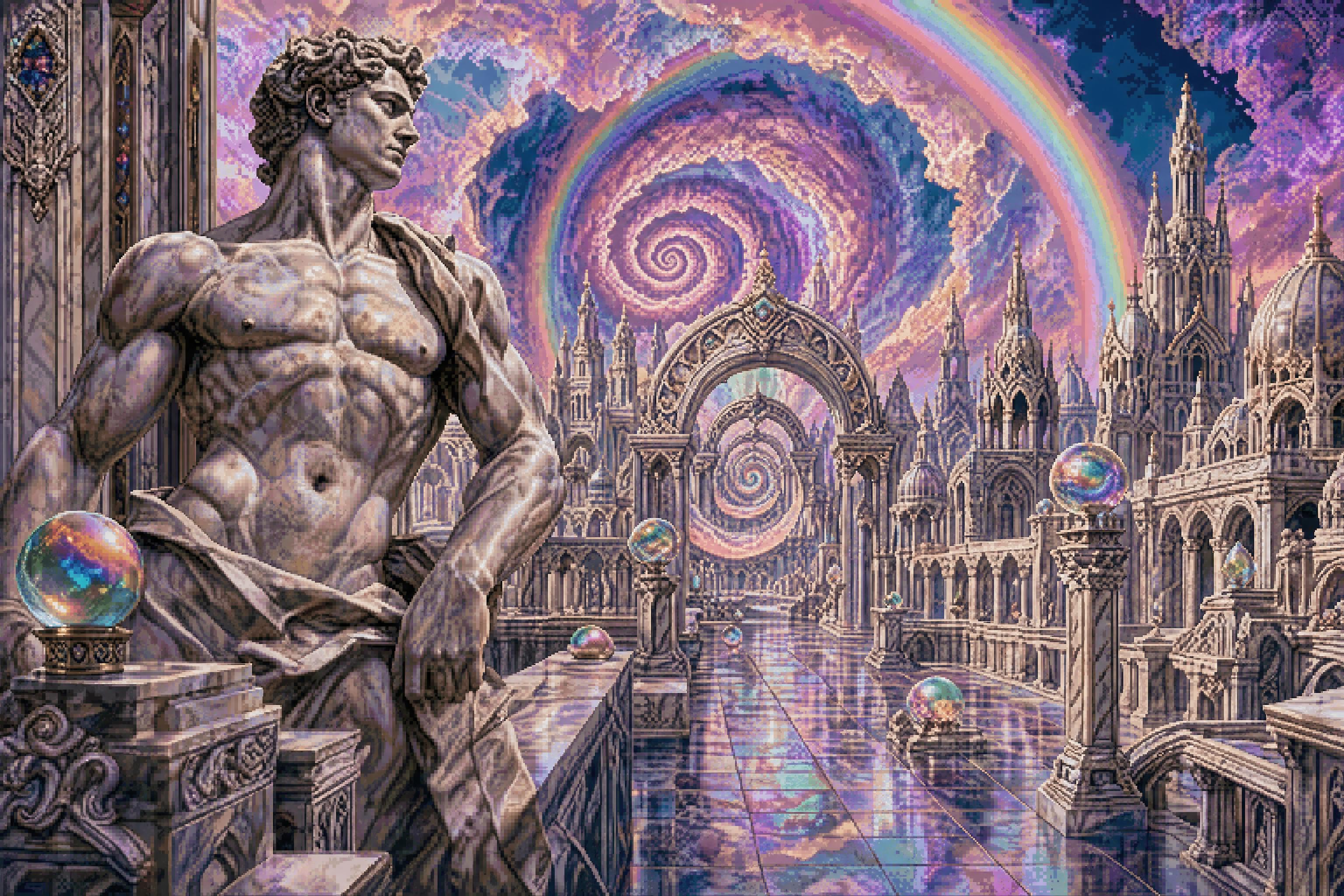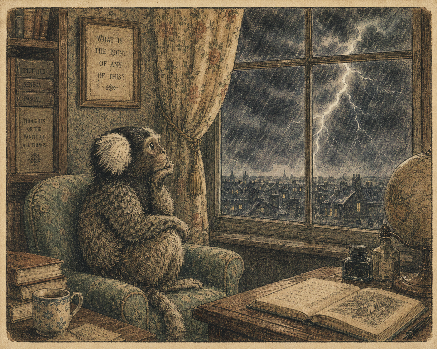 smug girl wearing striped sweater and shorts, lifting up foot. stunned onlooking ghost. pill capsules and and octopus floating in the background.