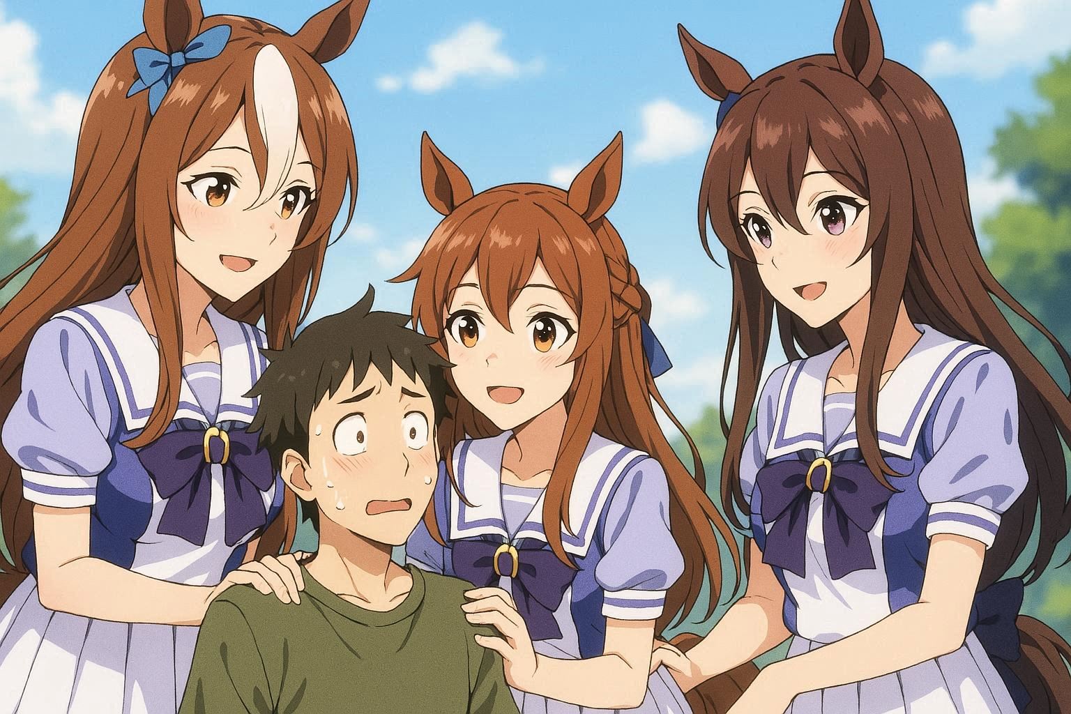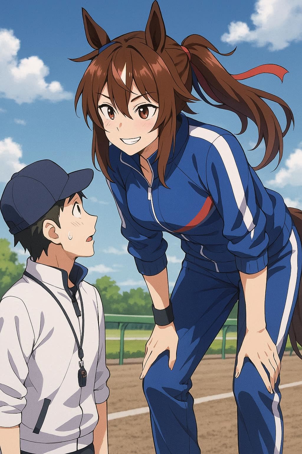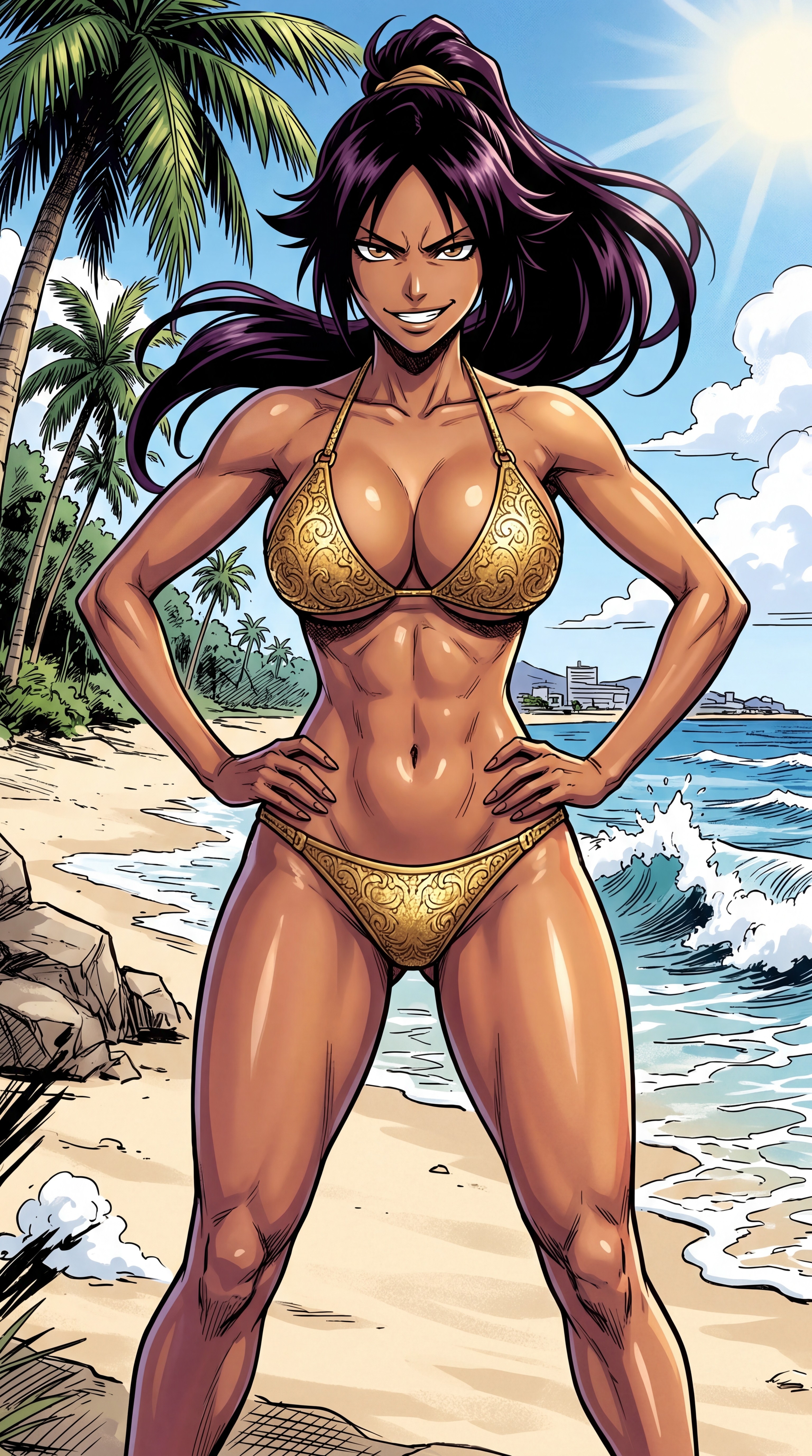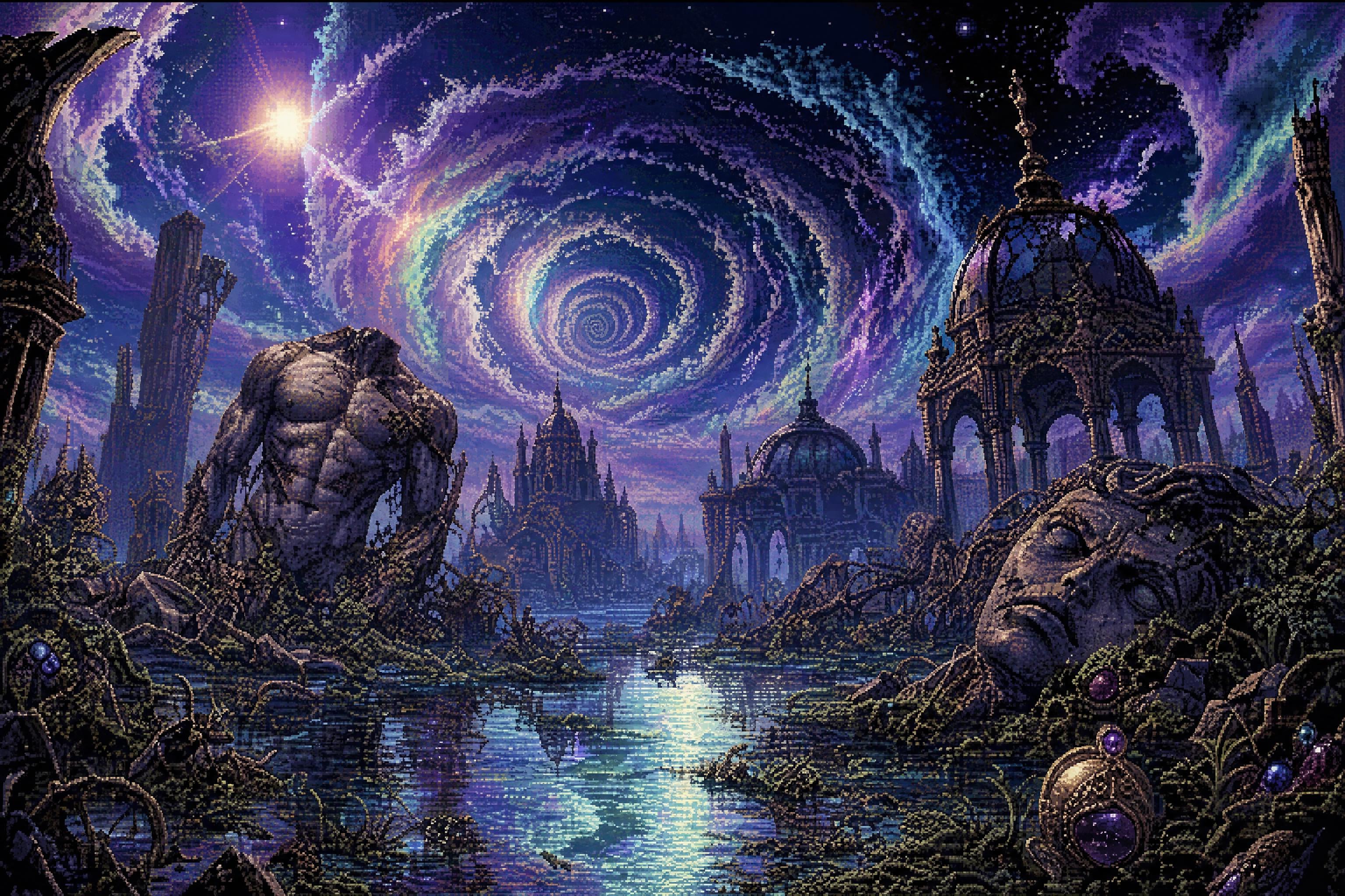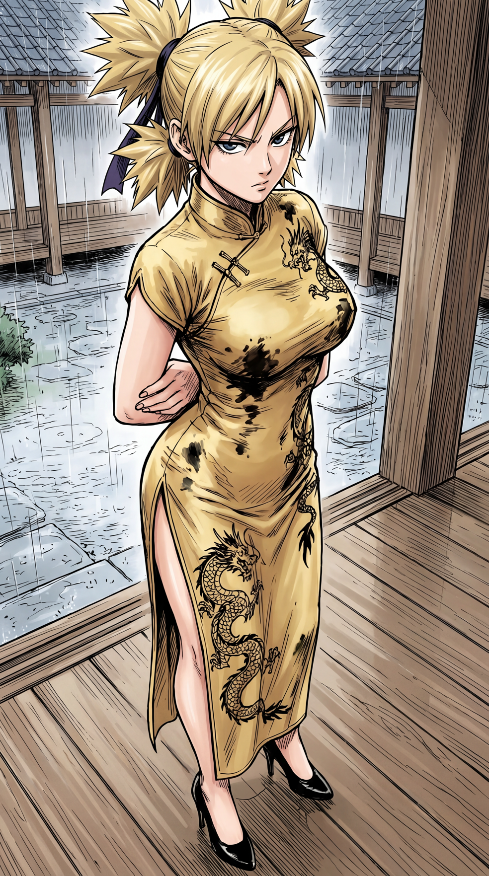 smug girl wearing striped sweater and shorts, lifting up foot. stunned onlooking ghost. pill capsules and and octopus floating in the background.