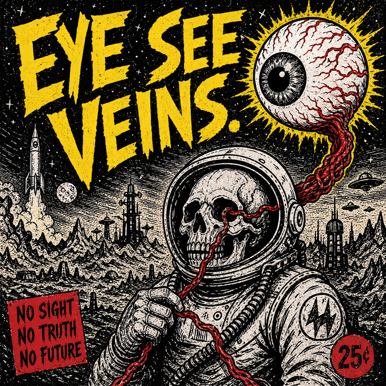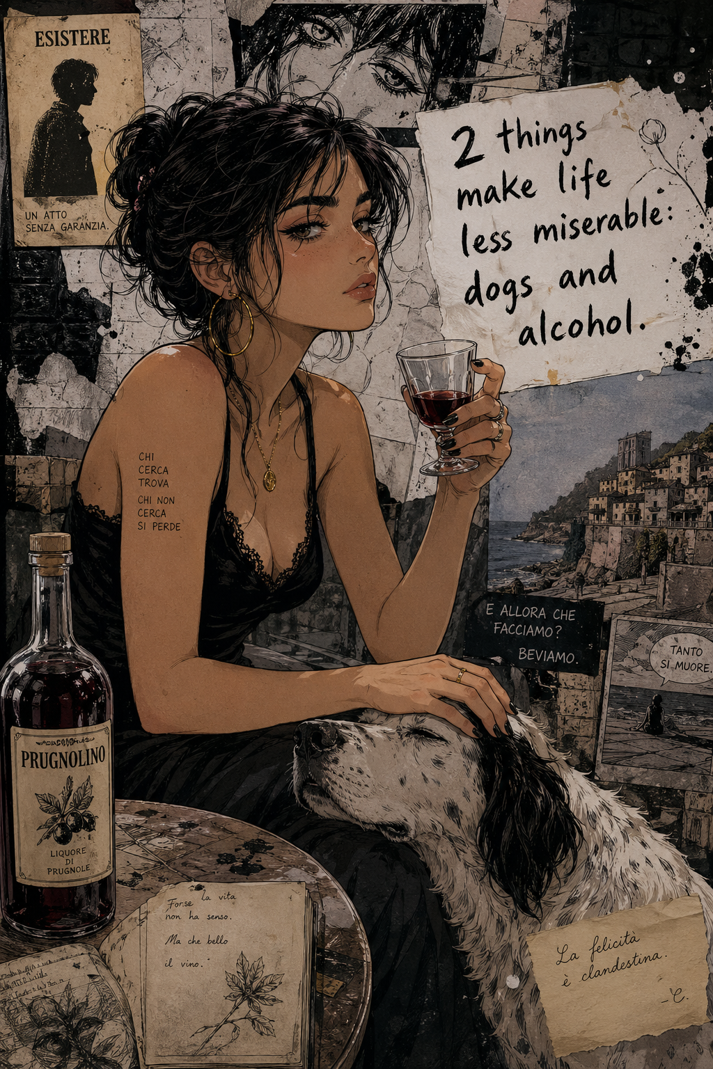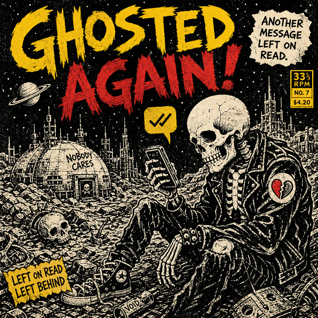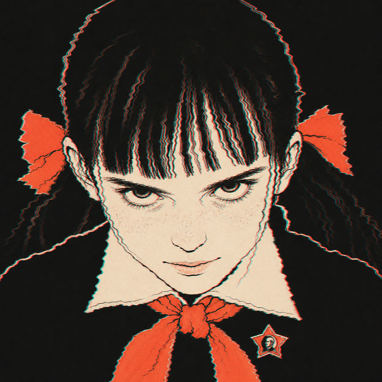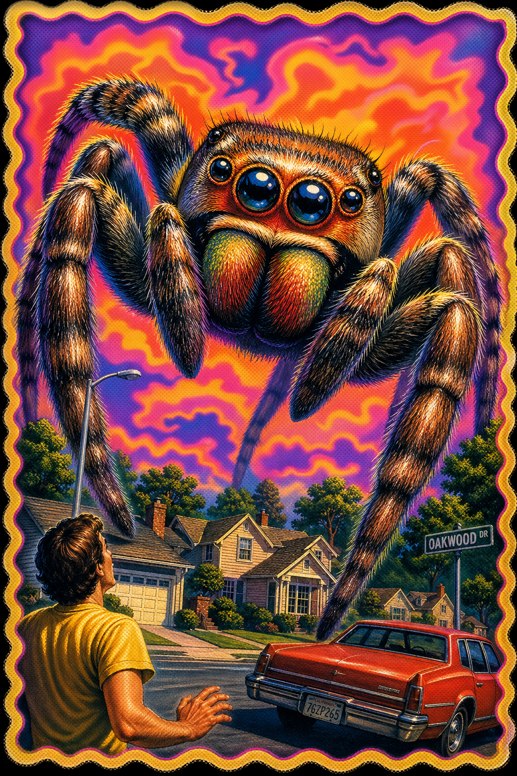 A recurring motif in this style is the use of "vibrational" or radiating energy patterns. Subjects are frequently surrounded by thick, jagged zig-zags, concentric spirals, and erratic hatching that suggest a humming, restless aura. These patterns often employ a primary-heavy color palette—blues, yellows, and reds—clashing against the dark, heavy ink of the central figures. The integration of handwritten text functions as a structural component of the composition, often trailing off or following the contours of the vibrating energy. The overall atmosphere is one of high-frequency tension, where the boundary between the subject and a chaotic, static-filled environment is blurred through constant, repetitive motion in the pen strokes.