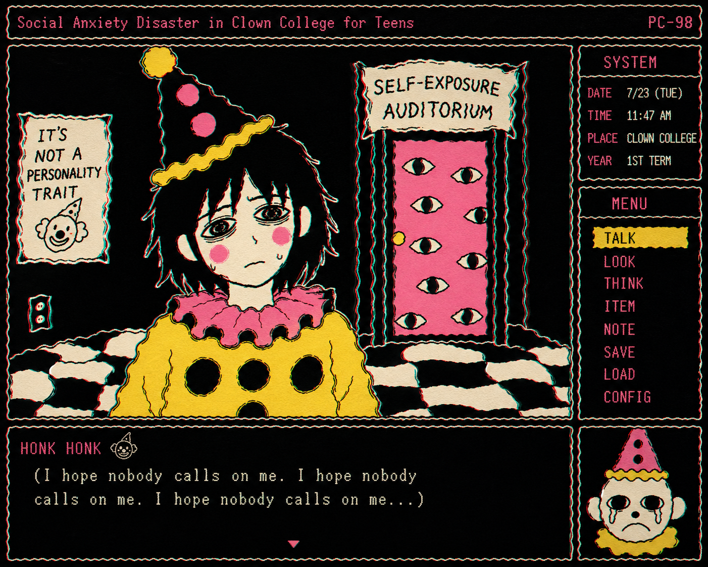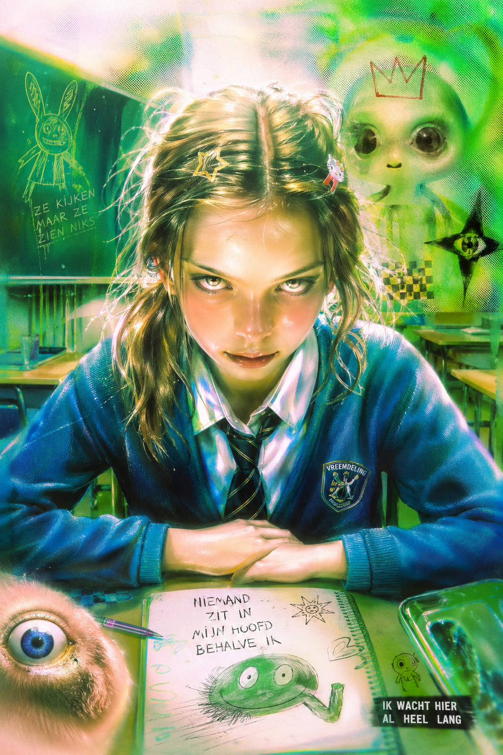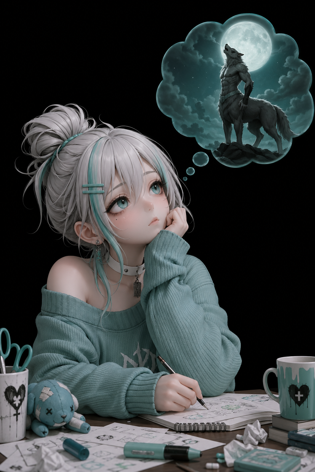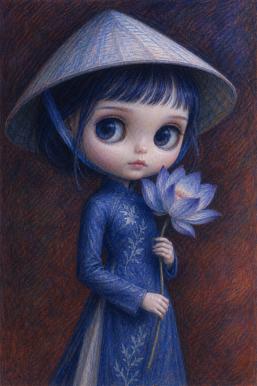 This aesthetic is defined by a raw, scratchy, and jittery illustrative style that emphasizes internal psychological states through frantic line work. The visual language is deeply rooted in an "outsider art" or "notebook doodle" tradition, utilizing utilitarian tools like ballpoint pens and colored pencils on lined or plain paper. The subjects are rendered with fragile, spindly proportions—elongated necks, wide-set eyes, and sharp, jagged features—that convey a sense of vulnerability and physical lightness. The line quality is intentionally nervous and unrefined, prioritizing the immediacy of the mark over formal anatomical correctness.