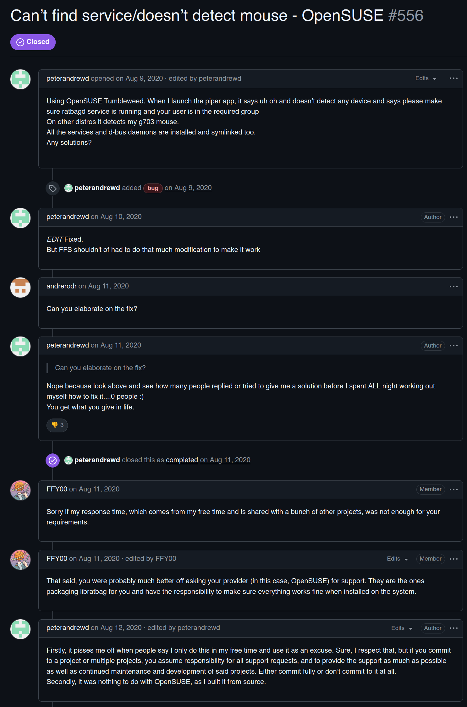 >>108697343Damn I wish you could take away free software from people. Imagine being that dev just going >hmph, well that's very entitled of youquietly to himself, afraid to even say it publicly lest he damage his """"reputation"""" (he doesn't have a reputation, and he does it FOR FREE).